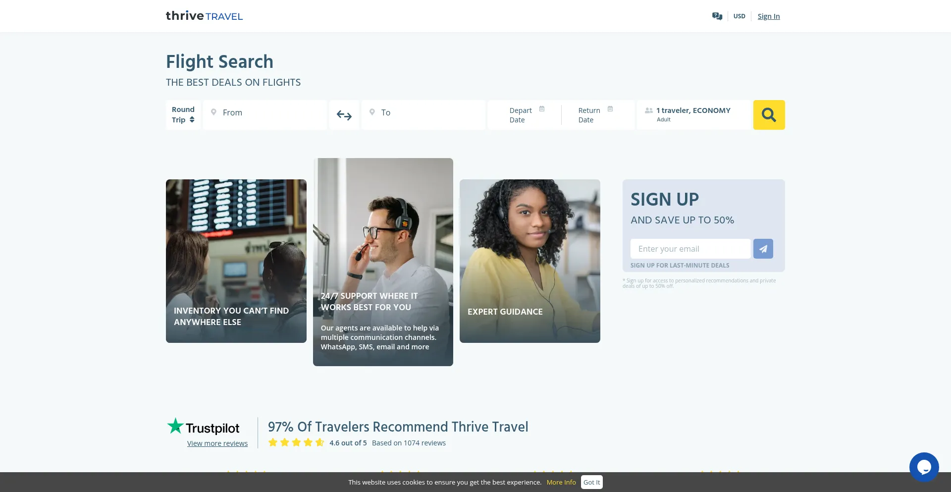 Thrive Travel is a flight booking engine that finds the best deals on flights. Save thousands when flying internationally to London, Paris, Rome and more...