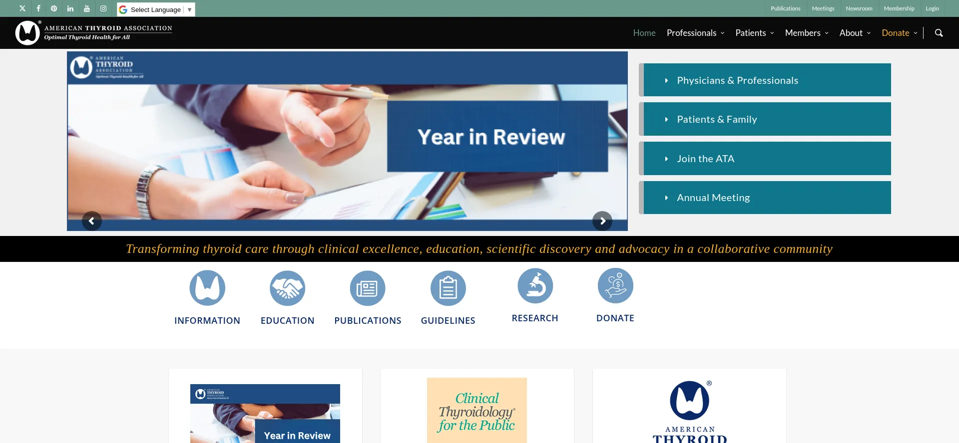 The American Thyroid Association® (ATA) is the professional home for clinicians and researchers dedicated to thyroid health. Learn more and join us.