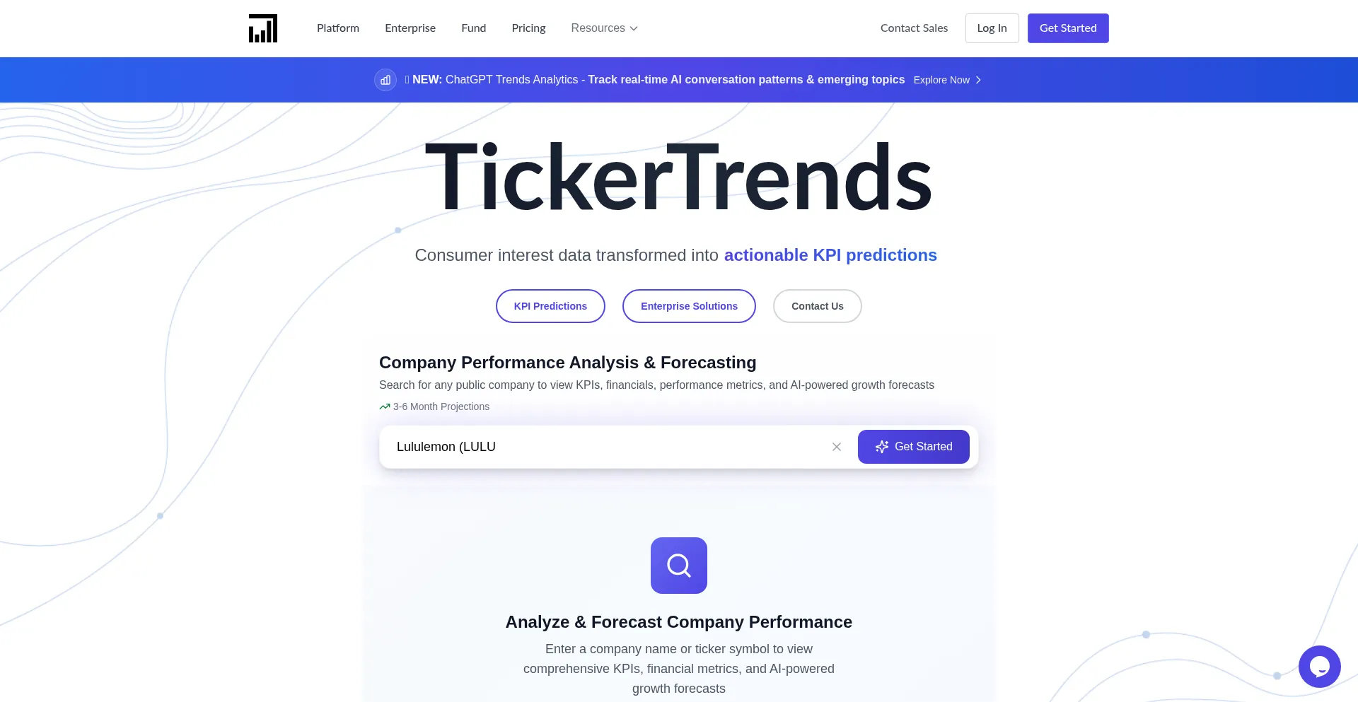 Discover exploding trends, social sentiment, and search data for public companies. TickerTrends provides cutting-edge alternative data and real-time market intelligence to help ...