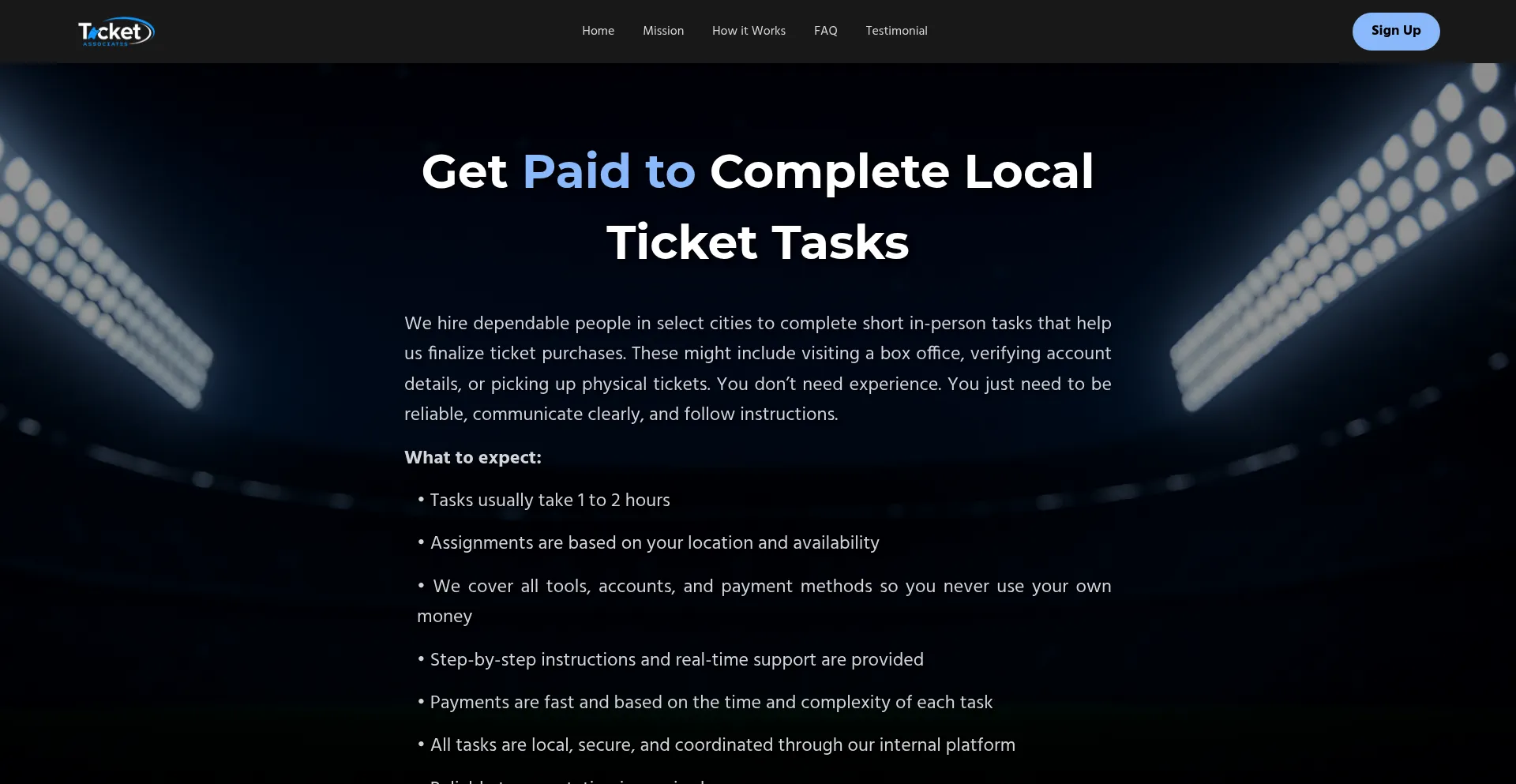 Ticketassociates.com operates as a suspicious website with multiple red flags that compromise its trustworthiness and user safety. The platform exhibits concerning characteristics including misleading information, questionable operational practices, or potential malware distribution that poses significant risks to visitors.