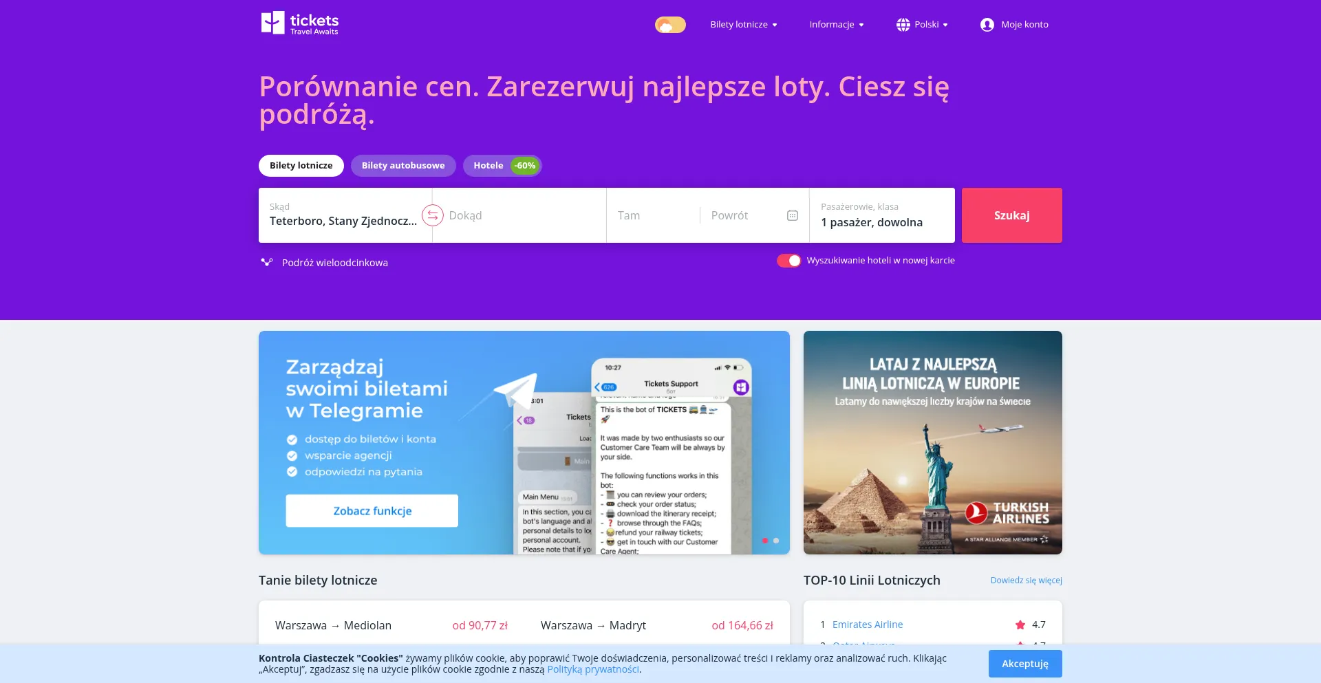 Bilety lotnicze na wszystkie kierunki. Rezerwacja biletów lotniczych online i tanie loty w jednym miejscu - Tickets.pl