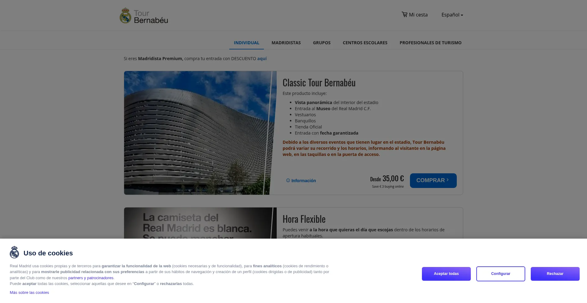 The website implements cookie consent mechanisms in compliance with privacy regulations such as GDPR or CCPA. This demonstrates that ticketstourbernabeu.realmadrid.com adheres to data protection standards and provides users with control over personal data collection practices.