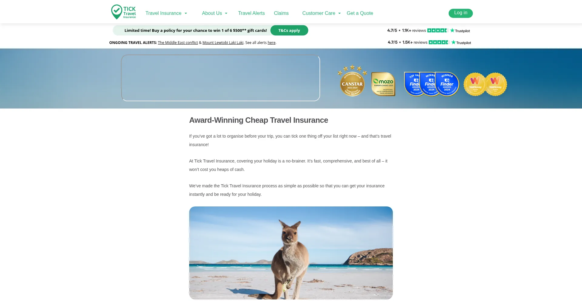 2024 Canstar Award Winner ! Tick Travel Insurance offers fast, Extensive, and affordable travel insurance. Easy claim process, instant policy