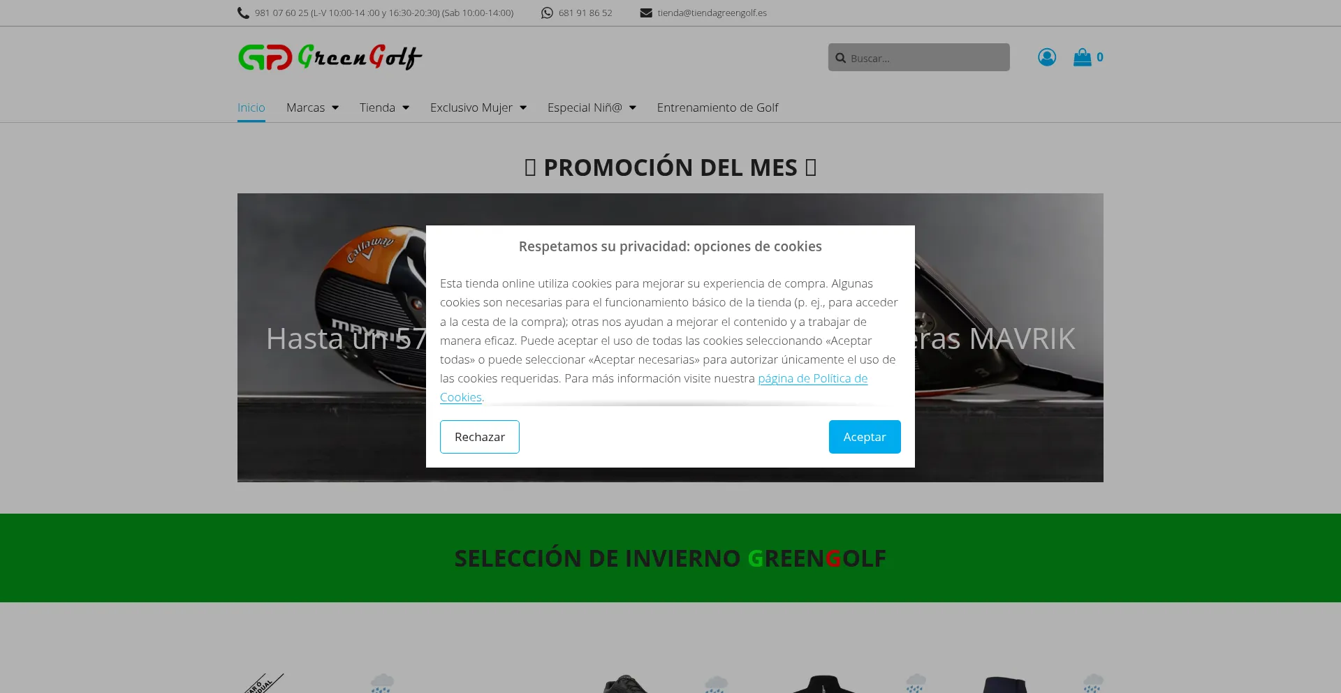 The website implements cookie consent mechanisms in compliance with privacy regulations such as GDPR or CCPA. This demonstrates that tiendagreengolf.es adheres to data protection standards and provides users with control over personal data collection practices.