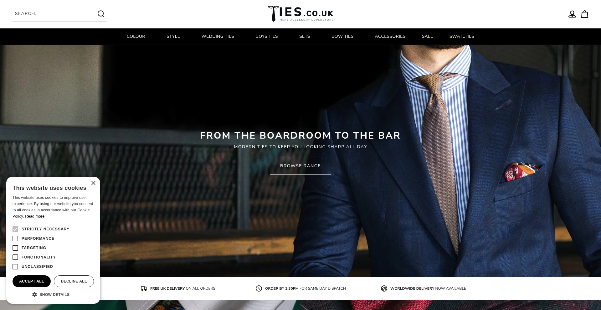The website implements cookie consent mechanisms in compliance with privacy regulations such as GDPR or CCPA. This demonstrates that ties.co.uk adheres to data protection standards and provides users with control over personal data collection practices.