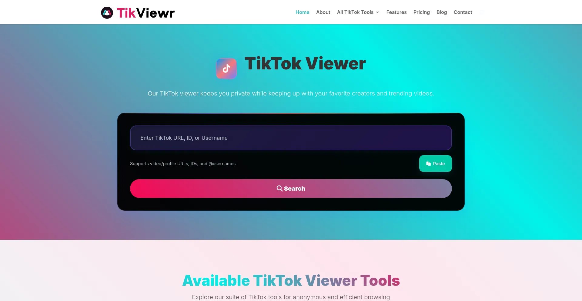 Use TikViewr as your TikTok viewer to explore TikTok anonymously. No login, secure and easy to use. View profiles and videos privately.