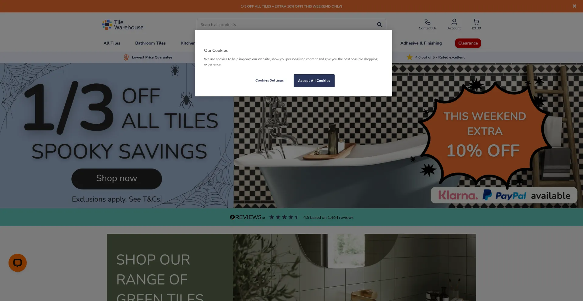 The website implements cookie consent mechanisms in compliance with privacy regulations such as GDPR or CCPA. This demonstrates that tilewarehouse.co.uk adheres to data protection standards and provides users with control over personal data collection practices.
