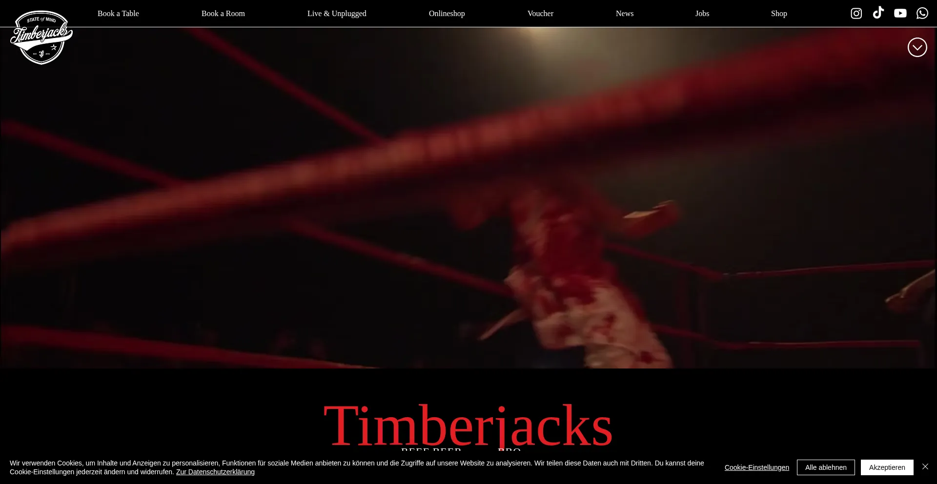 Real BBQ for you: Steak, Burger und Mexican Food. Ein Blockhaus, Bullriding, eine riesige LED Wand, Livemusik und ein echter Kamin. Beef, Beer & Rock ´n´ Roll. Dein Timberjack...