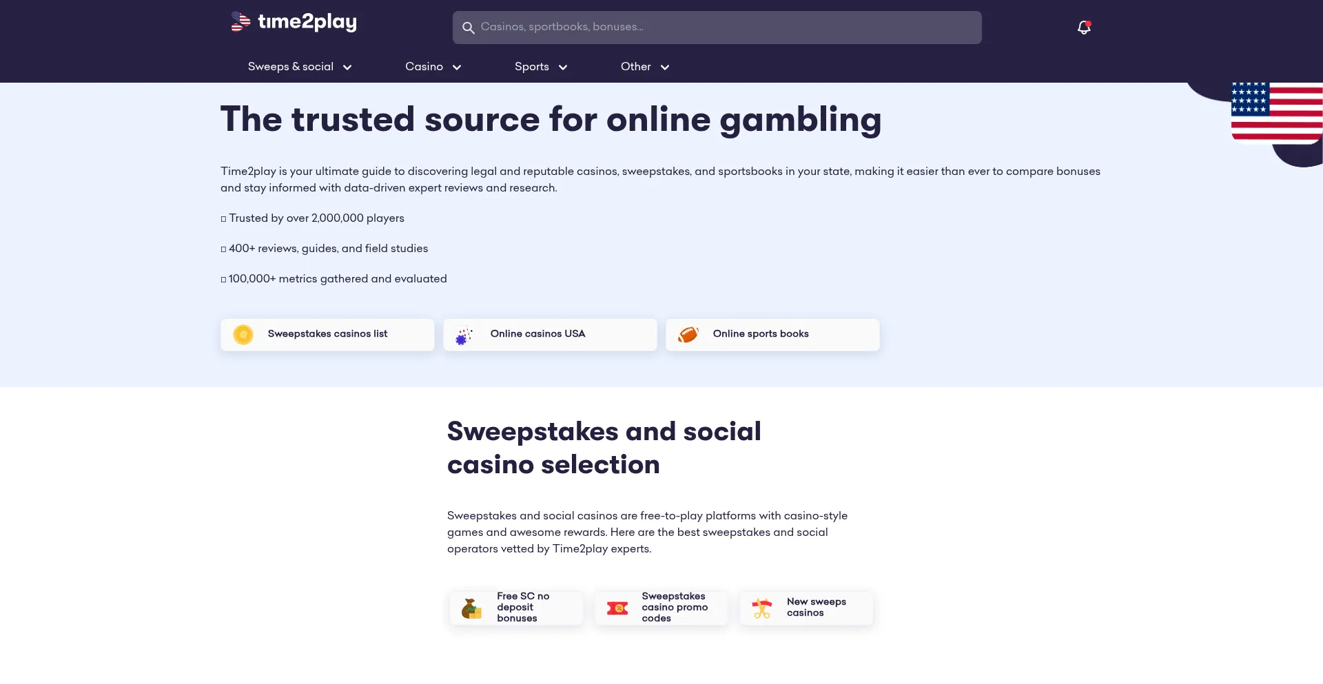 Discover the best online casinos and sports betting sites in the US, with unbiased, data-backed ratings by Time2play experts.
