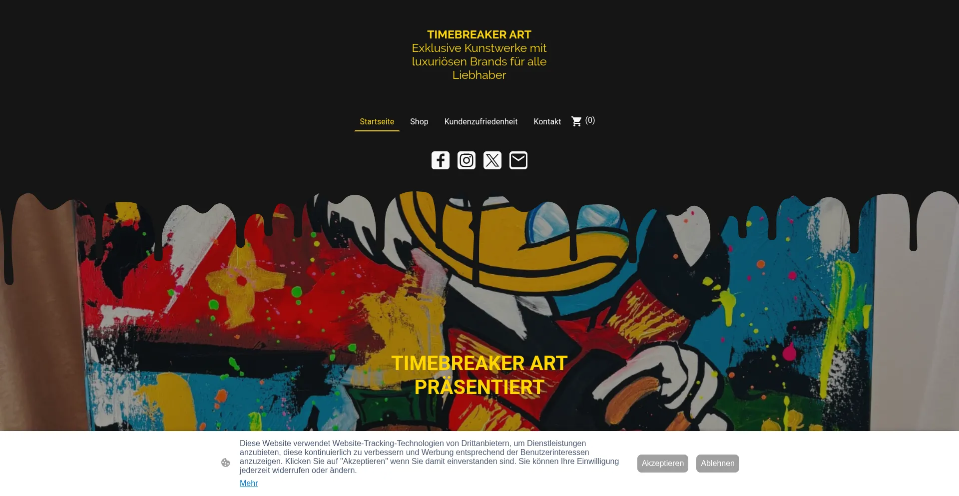 Analysis indicates that timebreakerart.com operates as an e-commerce platform facilitating online transactions for goods or services. The website implements shopping cart functionality, payment processing systems, and product catalog features typical of commercial retail operations.