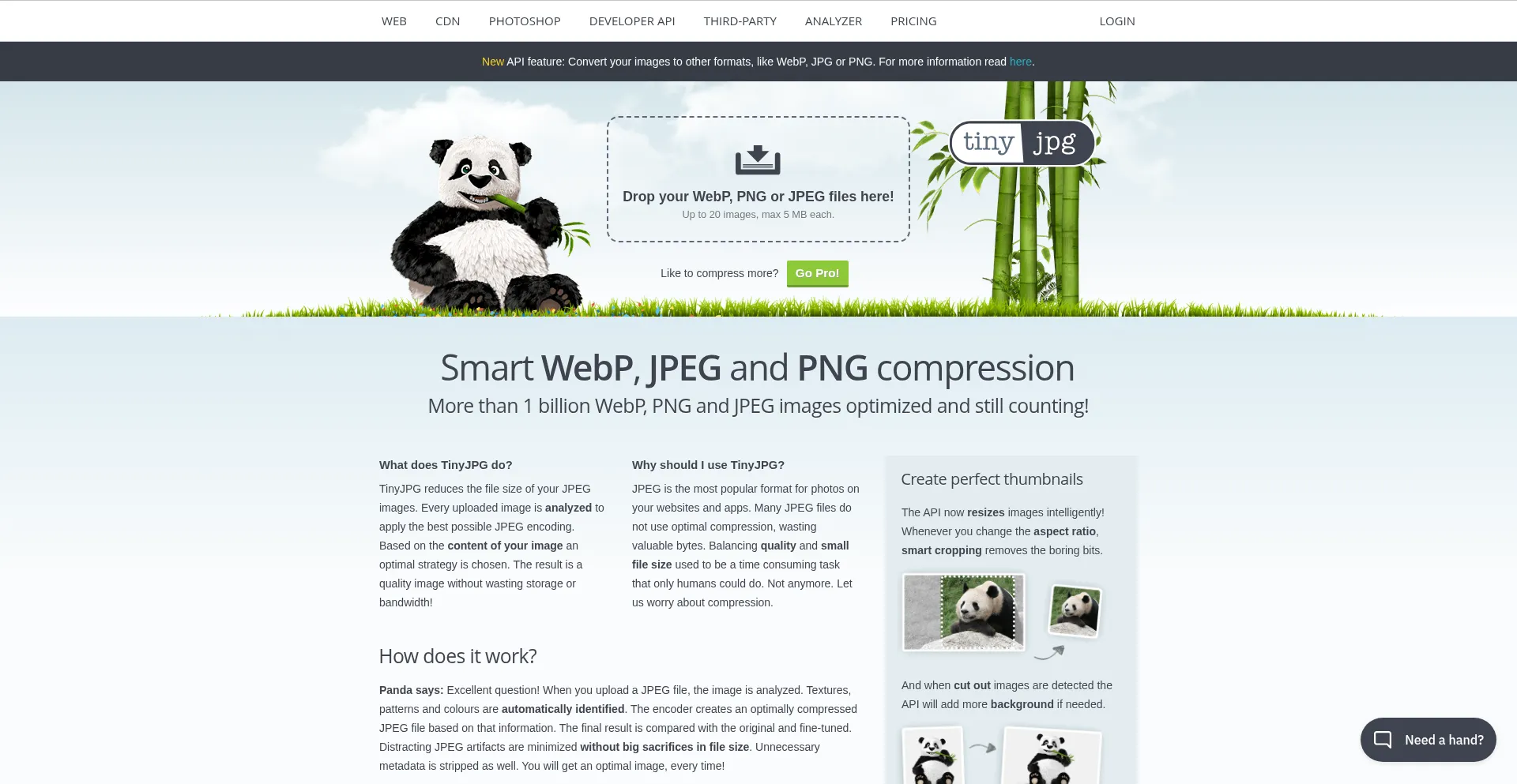 Make your website faster and save bandwidth. TinyJPG is the best automatic WEBP, JPEG and PNG optimizer and compresses your WEBP, JPEG and PNG images by 40-60%!