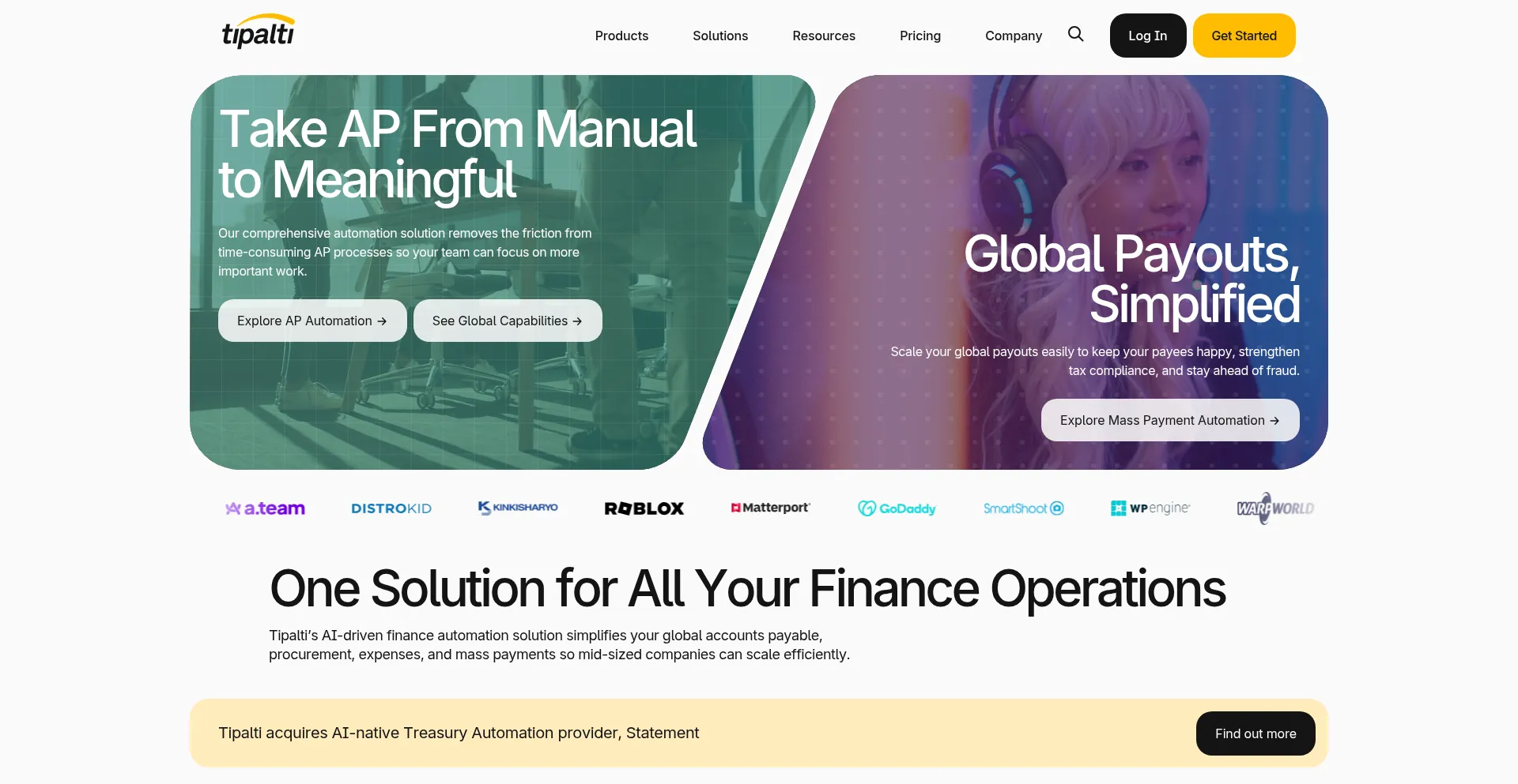 Tipalti helps drive business growth by automating and simplifying accounts payable, mass payments, procurement, and employee expenses in one connected suite.