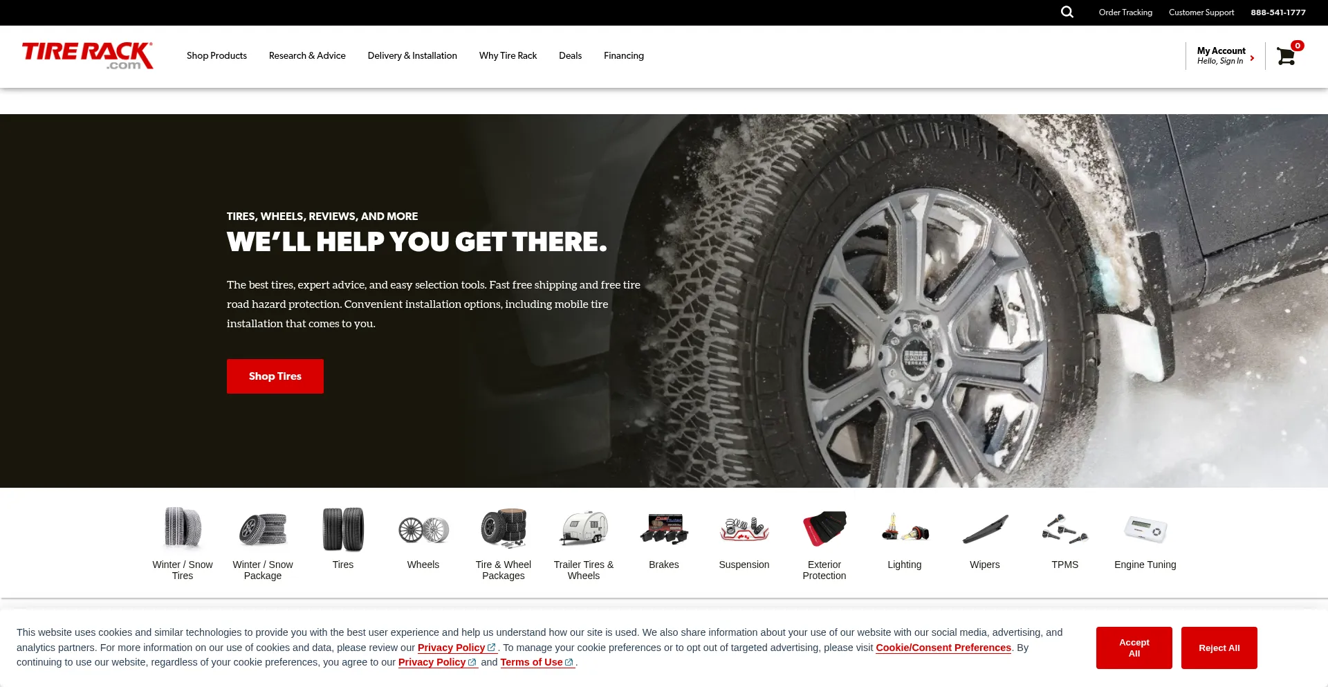 The website implements cookie consent mechanisms in compliance with privacy regulations such as GDPR or CCPA. This demonstrates that tirerack.com adheres to data protection standards and provides users with control over personal data collection practices.