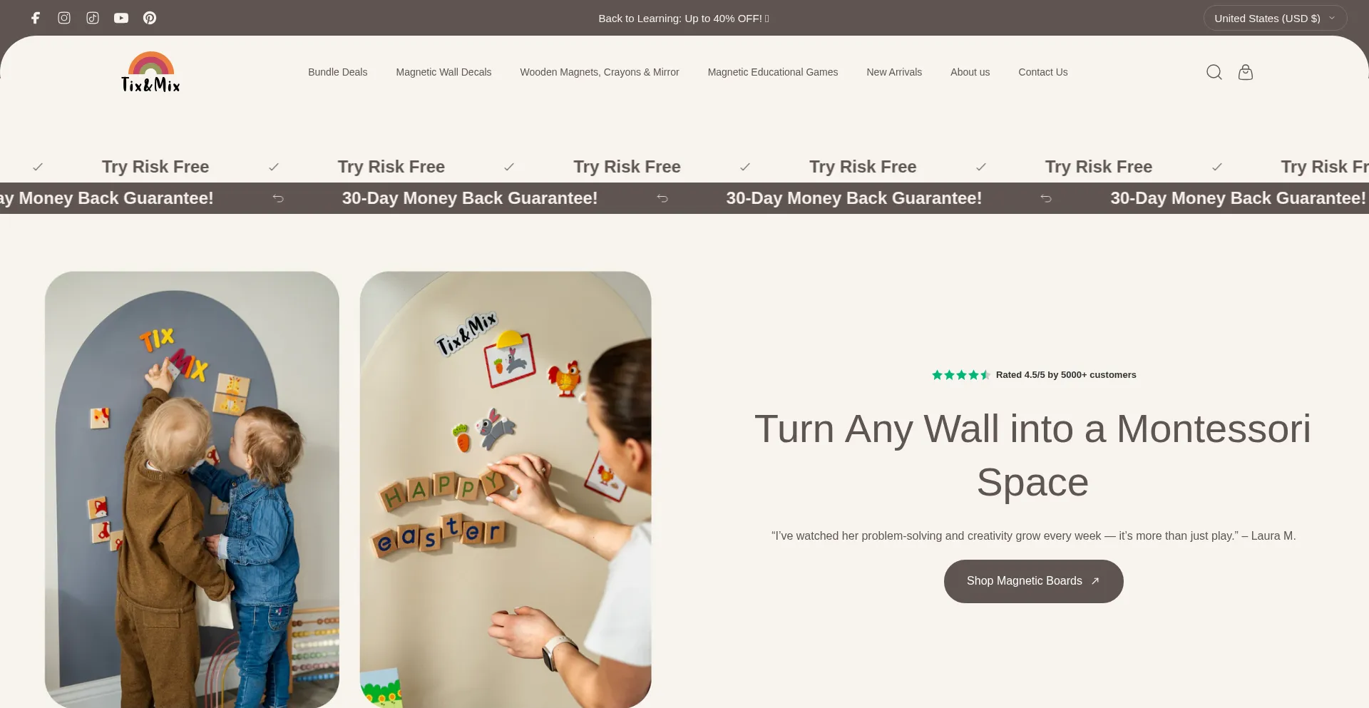 Discover the world’s most magical magnetic wall decals for kids. Tix&Mix turns any wall into a creative, screen-free play space with Montessori-inspired magnets.
