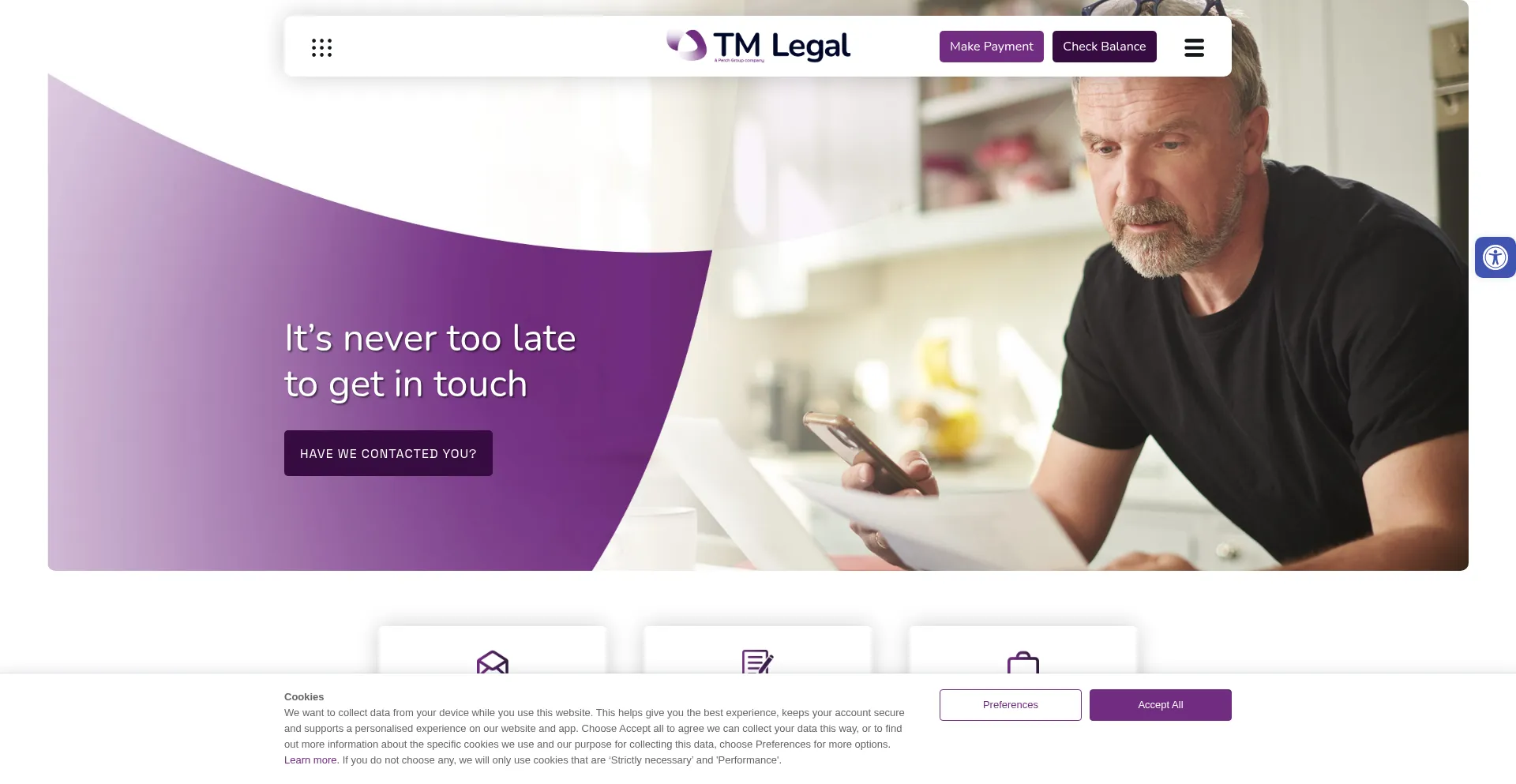 The website implements cookie consent mechanisms in compliance with privacy regulations such as GDPR or CCPA. This demonstrates that tm-legalservices.co.uk adheres to data protection standards and provides users with control over personal data collection practices.