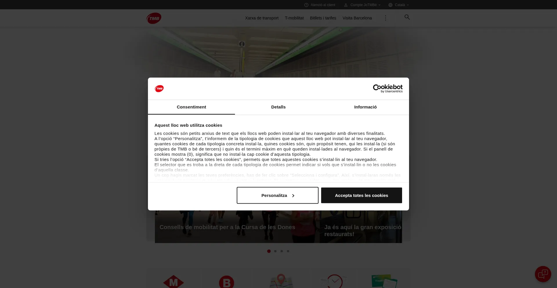 The website implements cookie consent mechanisms in compliance with privacy regulations such as GDPR or CCPA. This demonstrates that tmb.cat adheres to data protection standards and provides users with control over personal data collection practices.