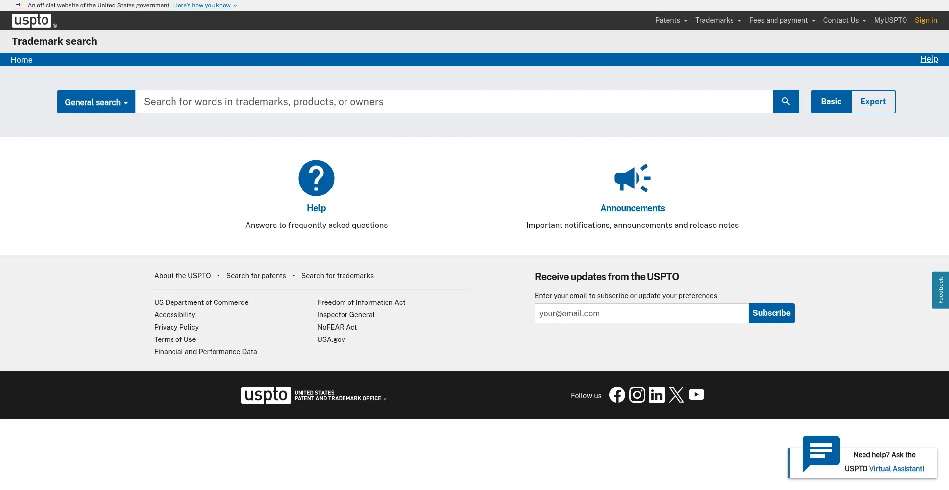 ttabvue.uspto.gov components.uspto.gov gov1.siteintercept.qualtrics.com patentcenter.uspto.gov assignmentcenter.uspto.gov www.linkedin.com www.instagram.com tsdr.uspto.gov my.uspto.gov estta.uspto.gov +22 more