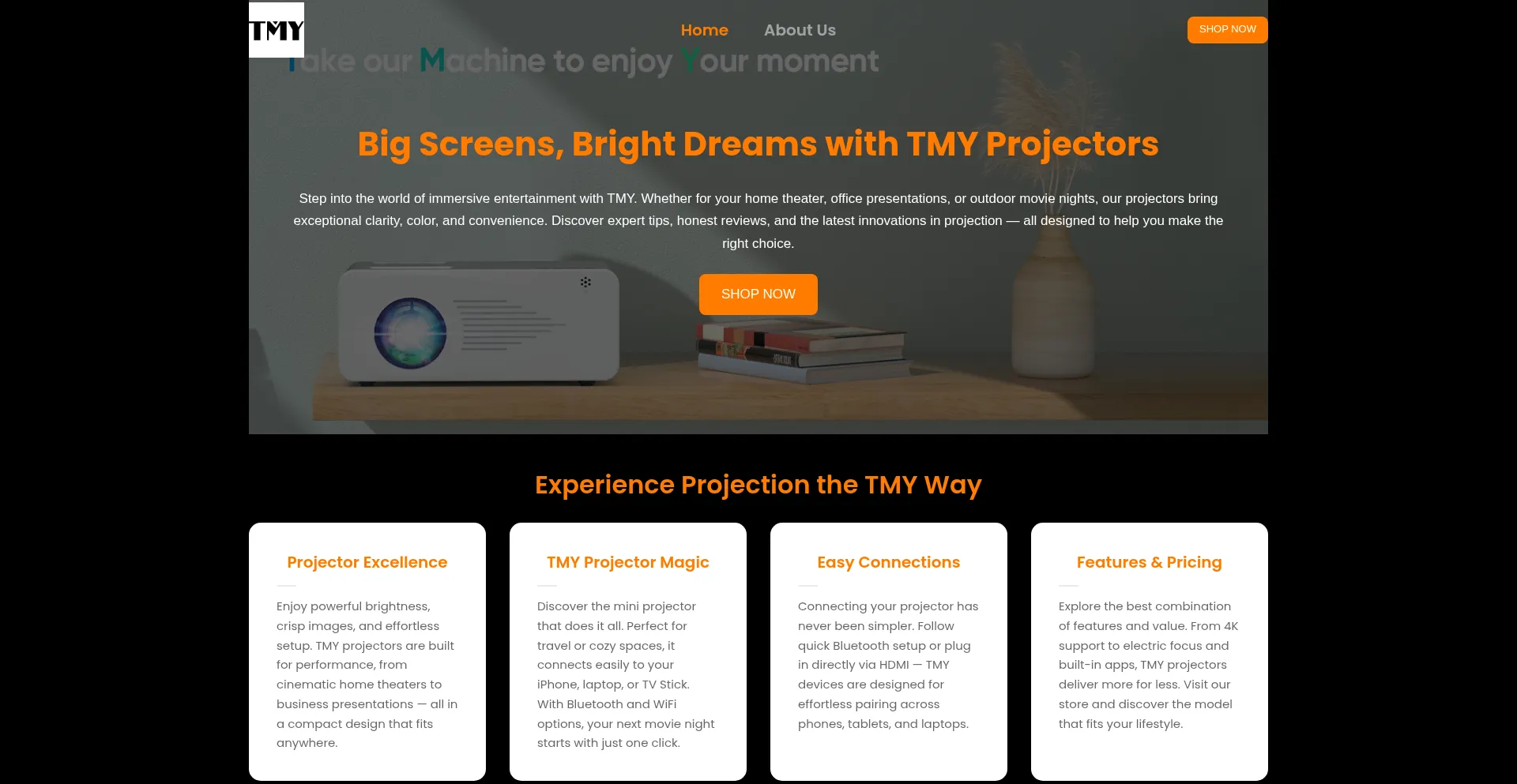 Discover TMY projectors — compact, powerful, and easy to use. Enjoy stunning visuals anywhere, from cozy movie nights to outdoor adventures.