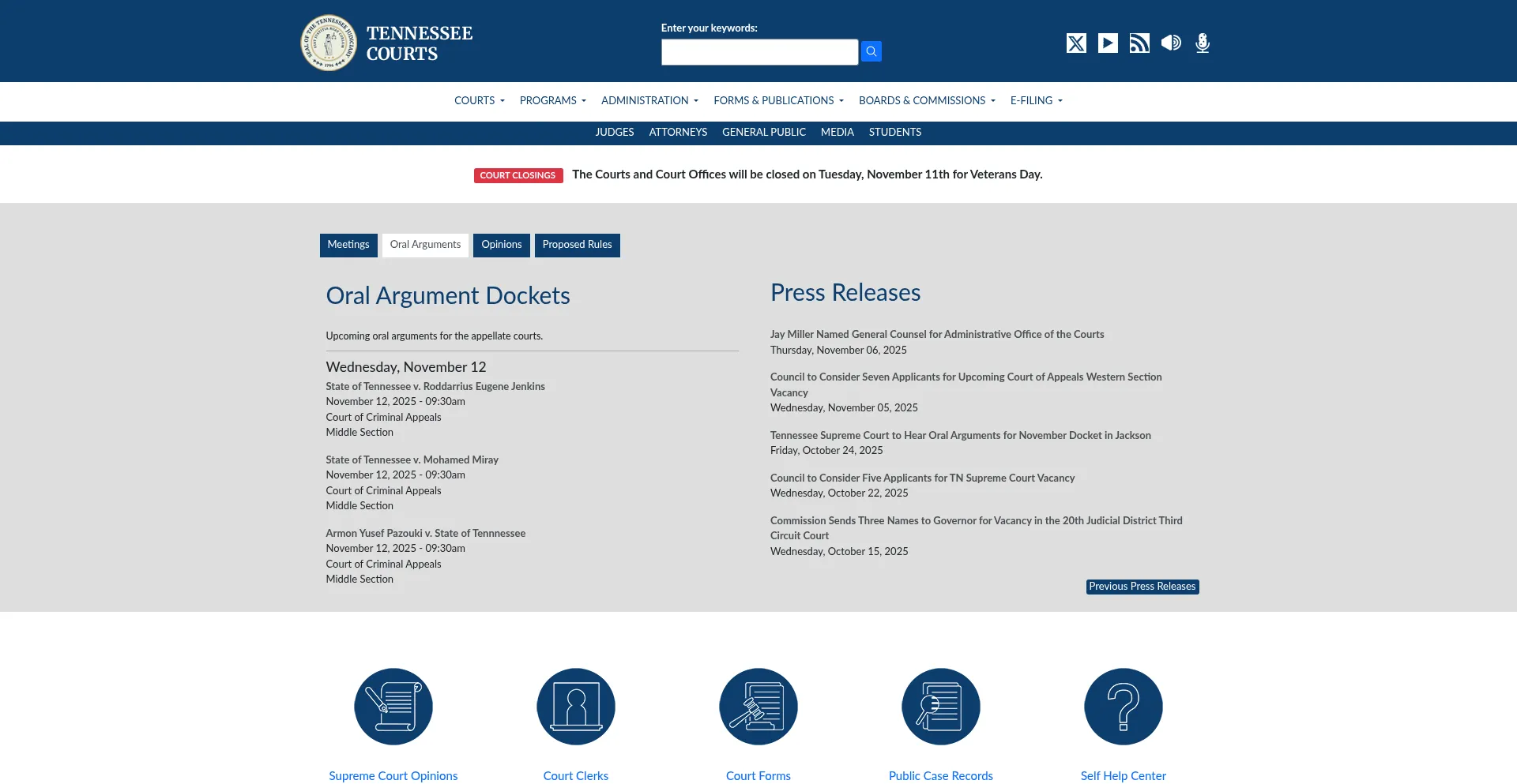 tncourts.gov uses Bootstrap, a widely-adopted open-source framework for responsive web development. Bootstrap enables efficient creation of mobile-friendly interfaces through standardized components and styling.