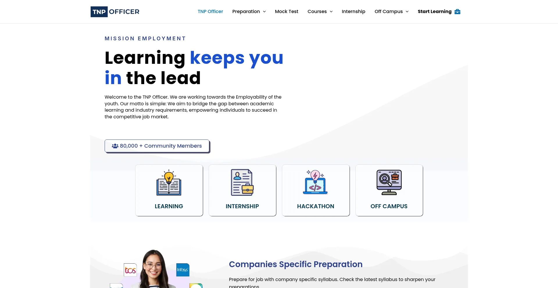 Stay ahead with TNP Officer! Get the latest off-campus job updates, internships, hackathons, and tech courses. Ace your career with expert training & mock tests. Start now!