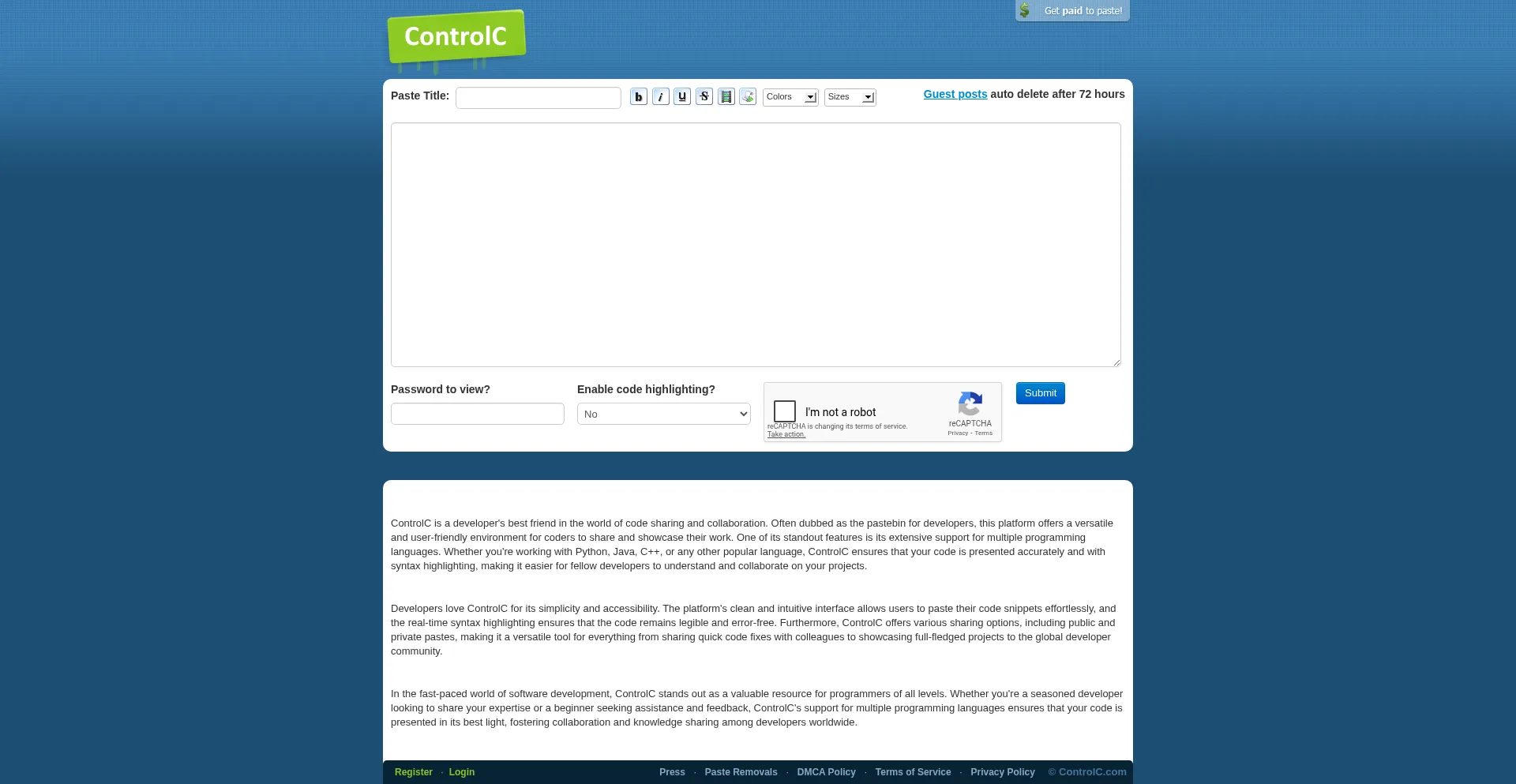 ControlC Pastebin - The easiest way to host your text