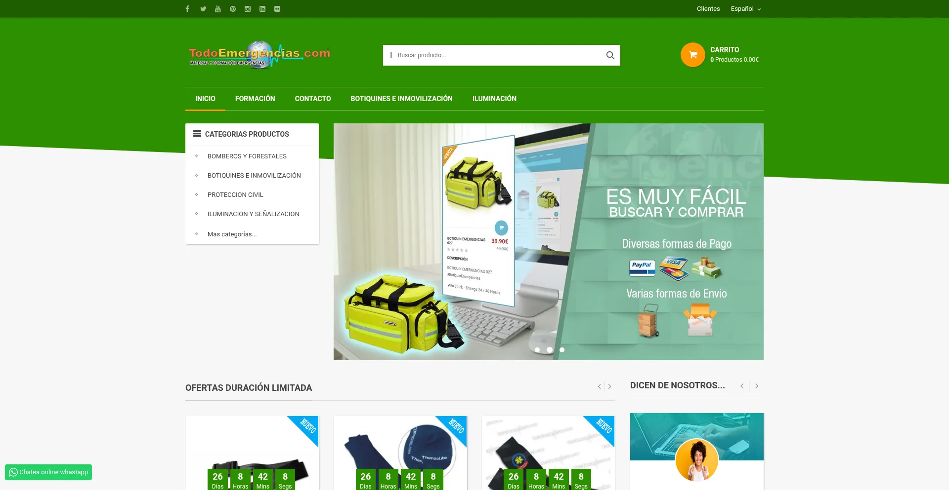 Venta online de todo tipo de material para Emergencias: Instrumental Sanitario, Botiquines de Emergencia, Material de Bomberos y Protección Civil, etc.