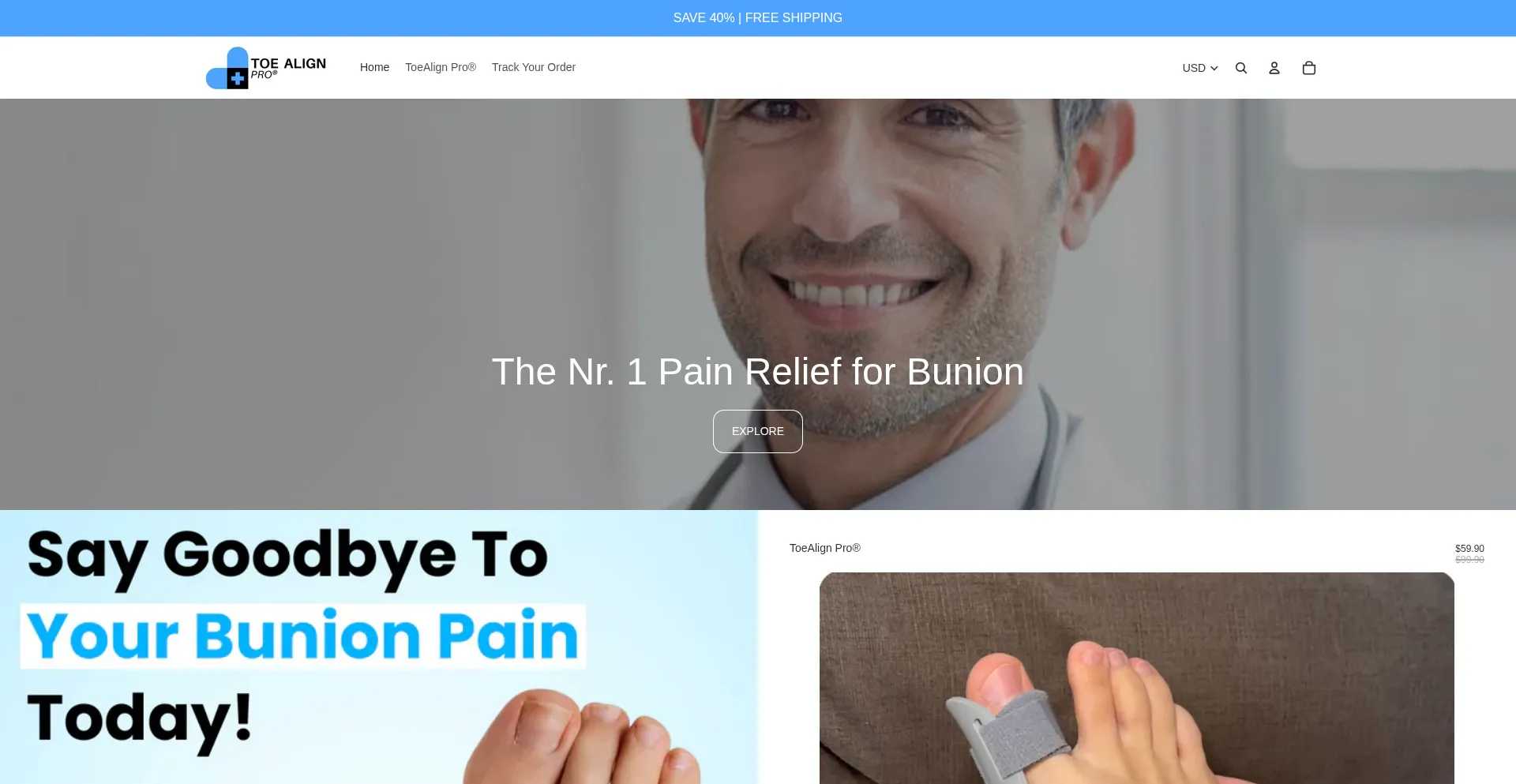 Analysis indicates that toealignpro.com operates as an e-commerce platform facilitating online transactions for goods or services. The website implements shopping cart functionality, payment processing systems, and product catalog features typical of commercial retail operations.