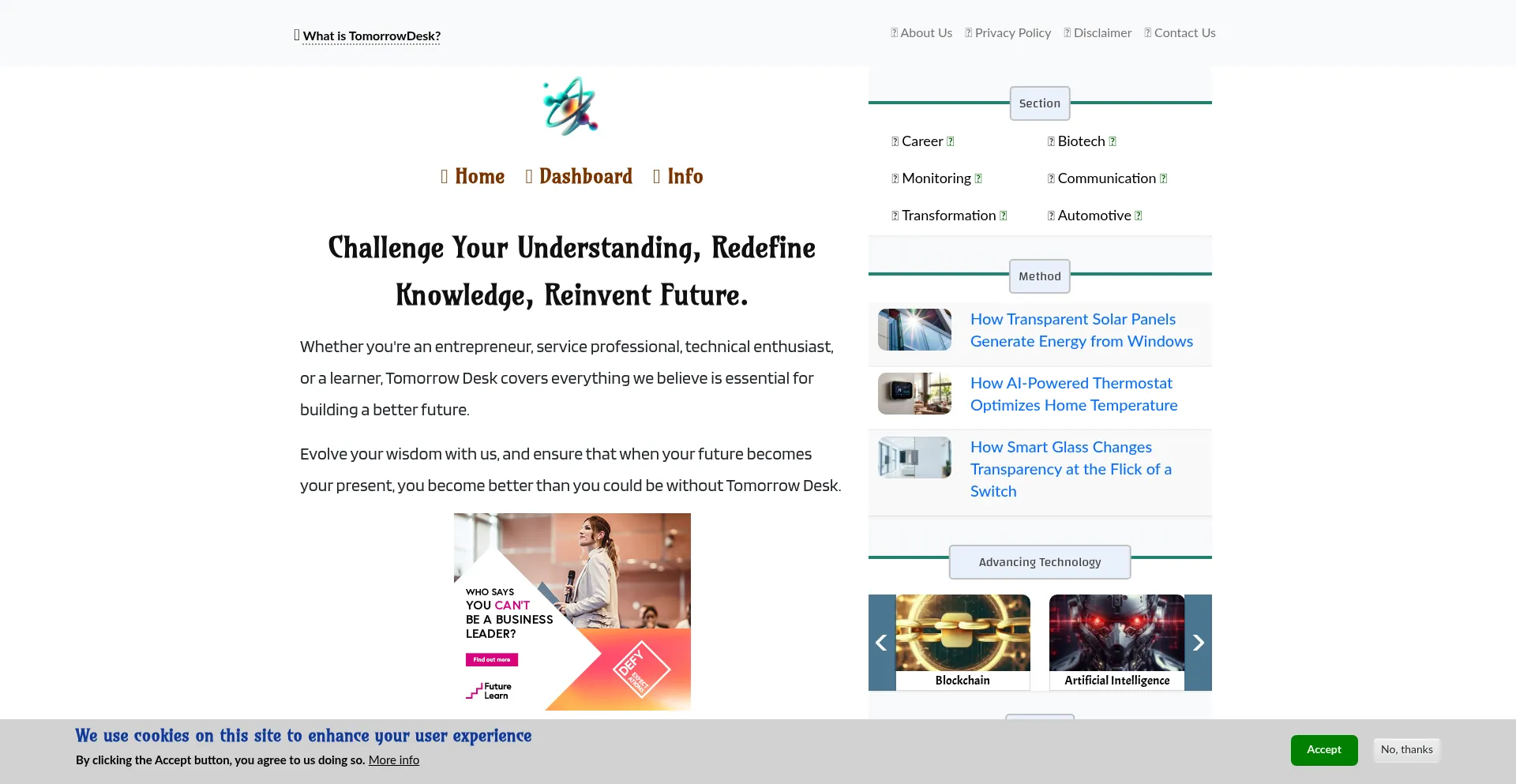 The website implements cookie consent mechanisms in compliance with privacy regulations such as GDPR or CCPA. This demonstrates that tomorrowdesk.com adheres to data protection standards and provides users with control over personal data collection practices.