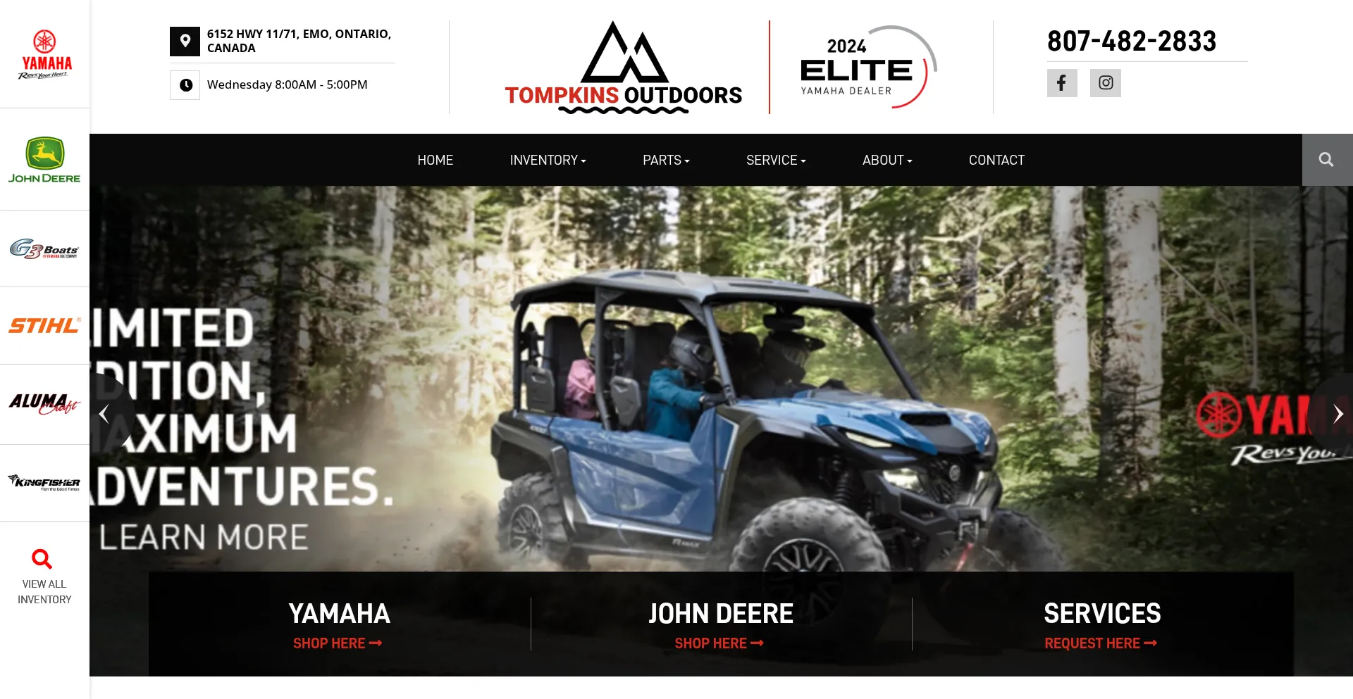 Activate your Outdoor Adventures with Tompkins Outdoors. Discover our range of Yamaha Vehicles, John Deere Vehicles, Stihl Tools, and Alumacraft Boats. We offer Genuine Parts an...
