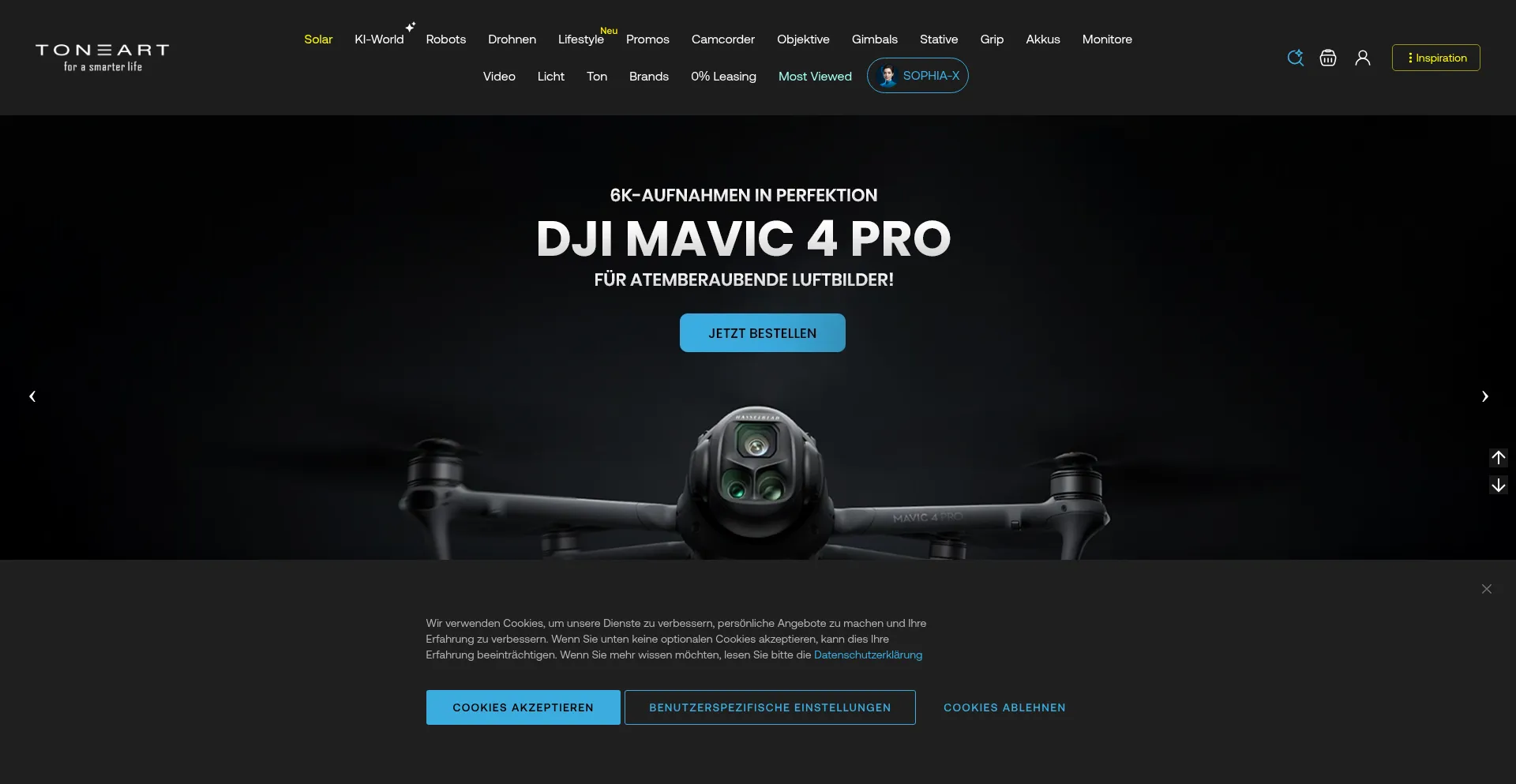 TONEART-Shop - Einer der besten Shops für Camcorder, Solartechnik und Robotics! Profitieren Sie von unserem 0% Leasing, 30 Tage Zahlungsziel und Ratenkauf!