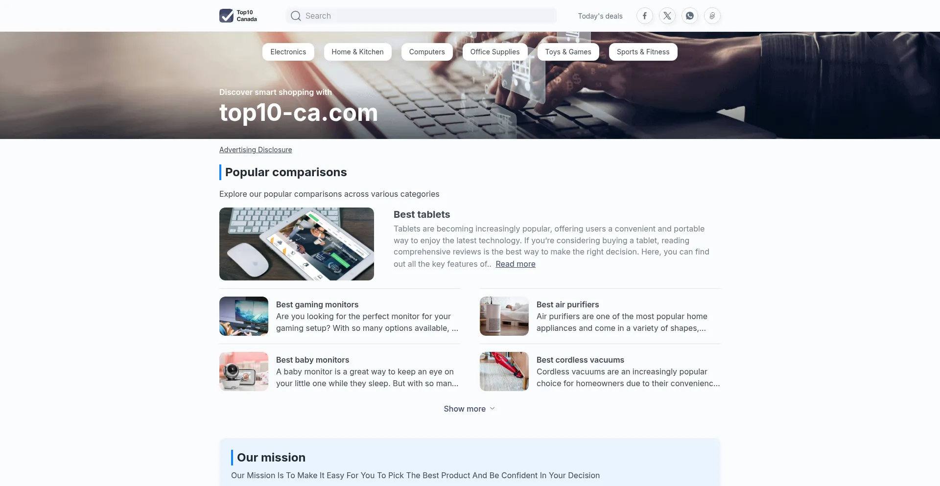Best Products Compared. top10-ca.com processes huge amounts of online data to provide you the best trustworthy product comparisons and reviews.