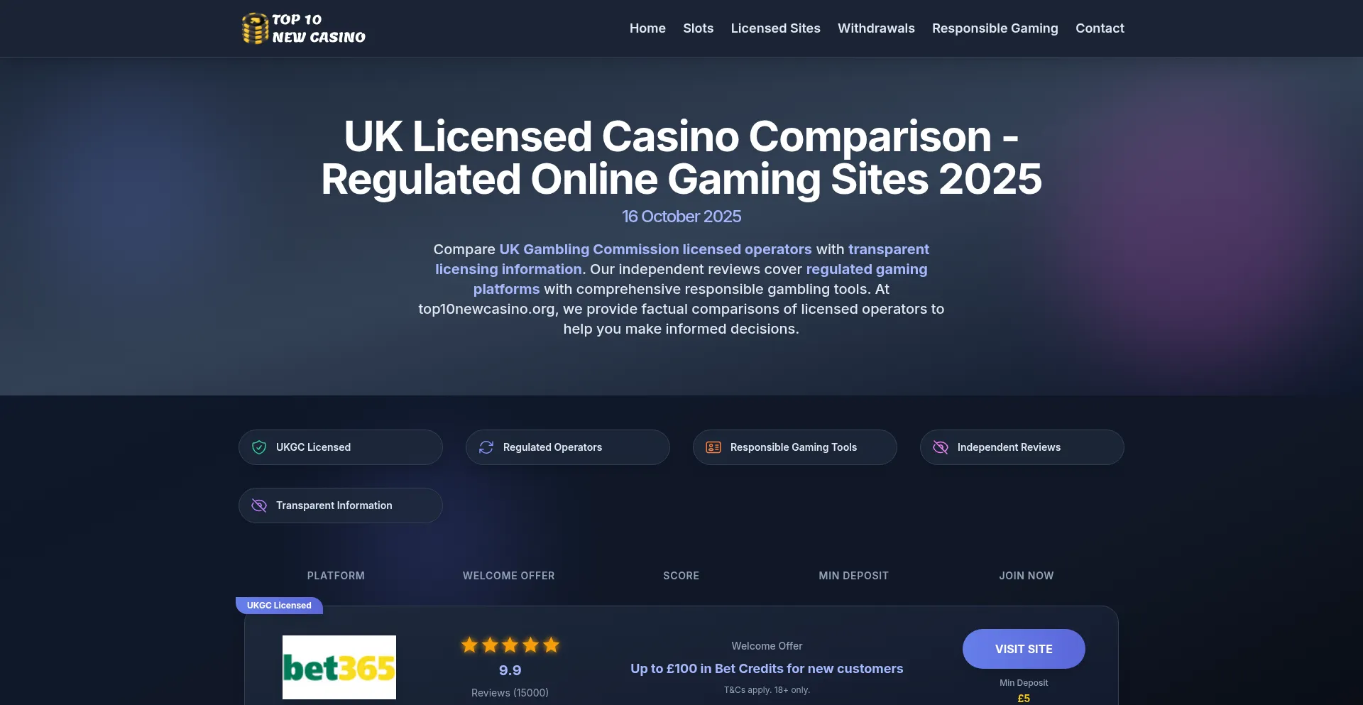 Compare UK Gambling Commission licensed online casinos. Independent reviews of regulated gaming sites with responsible gambling information and official licensing details.