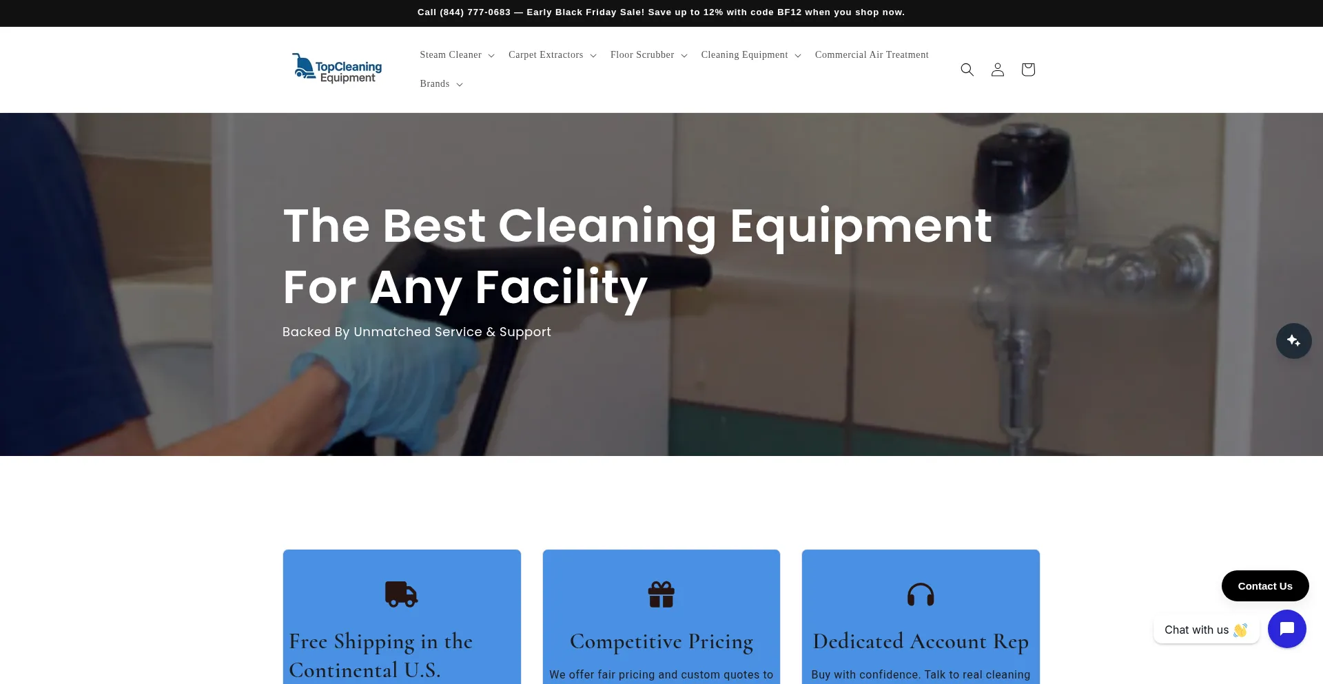 The topcleaningequipment.com website utilizes free e-commerce platform solutions, which may indicate cost-conscious operations but could also suggest limitations in security features, customer support, or advanced functionality compared to enterprise-grade solutions.