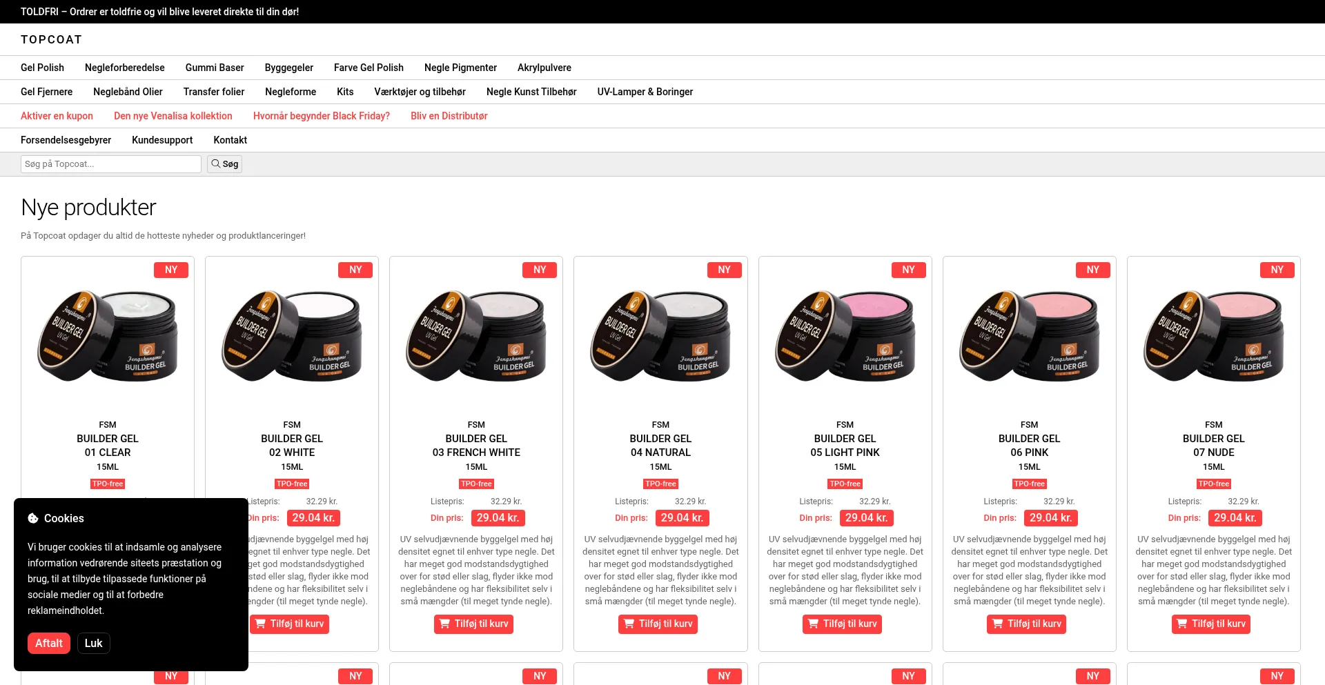 Analysis indicates that topcoatgels.dk operates as an e-commerce platform facilitating online transactions for goods or services. The website implements shopping cart functionality, payment processing systems, and product catalog features typical of commercial retail operations.