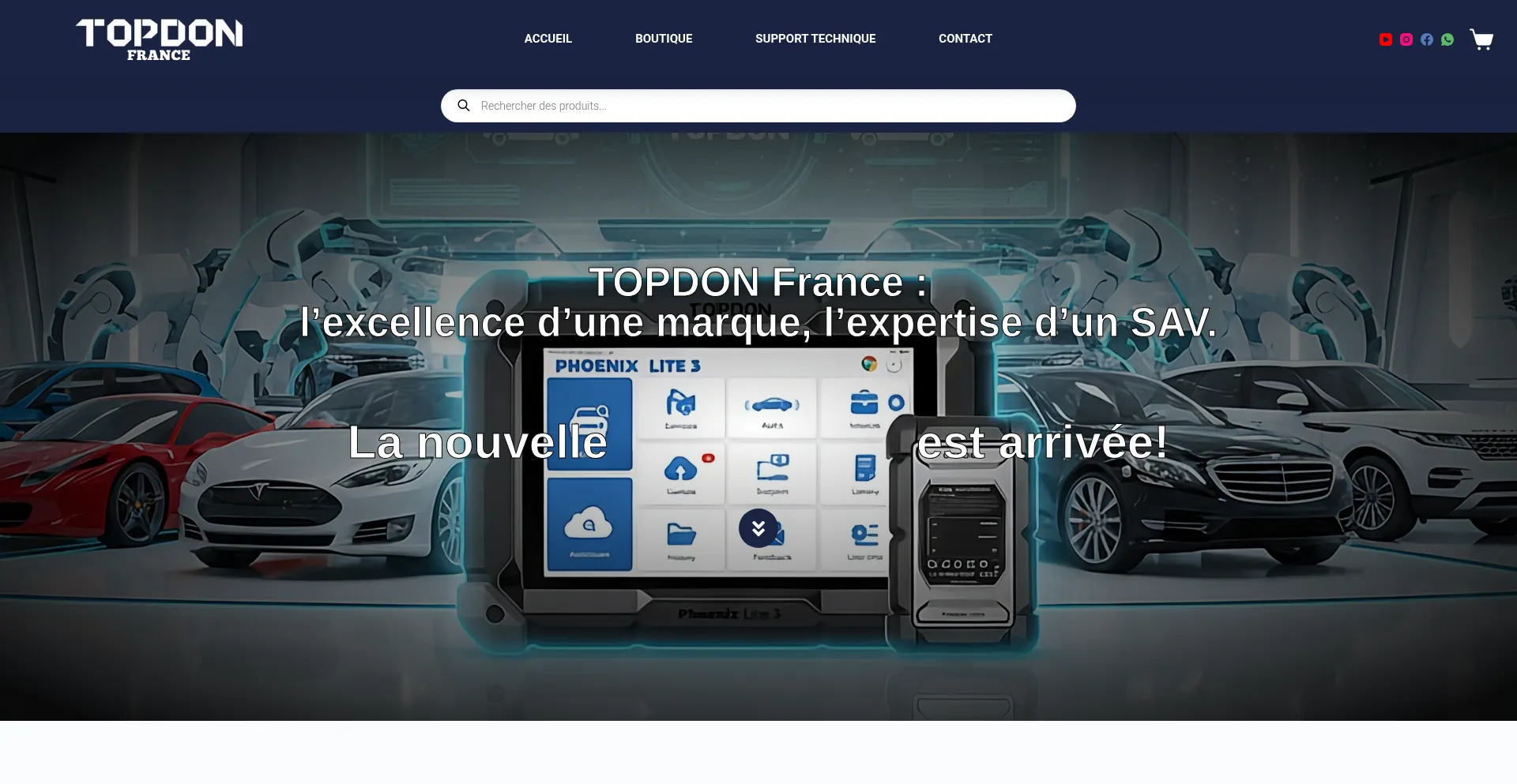 TOPDON France : Spécialiste des outils de diagnostic automobile professionnels. Valises de diagnostic, chargeurs et boosters de batterie.