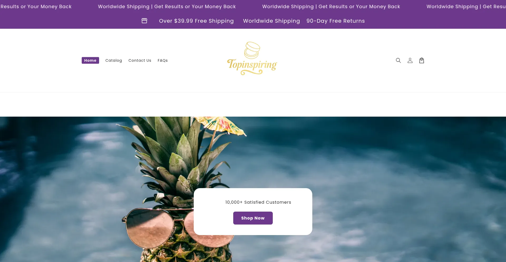 Analysis indicates that topinspiring.com operates as an e-commerce platform facilitating online transactions for goods or services. The website implements shopping cart functionality, payment processing systems, and product catalog features typical of commercial retail operations.
