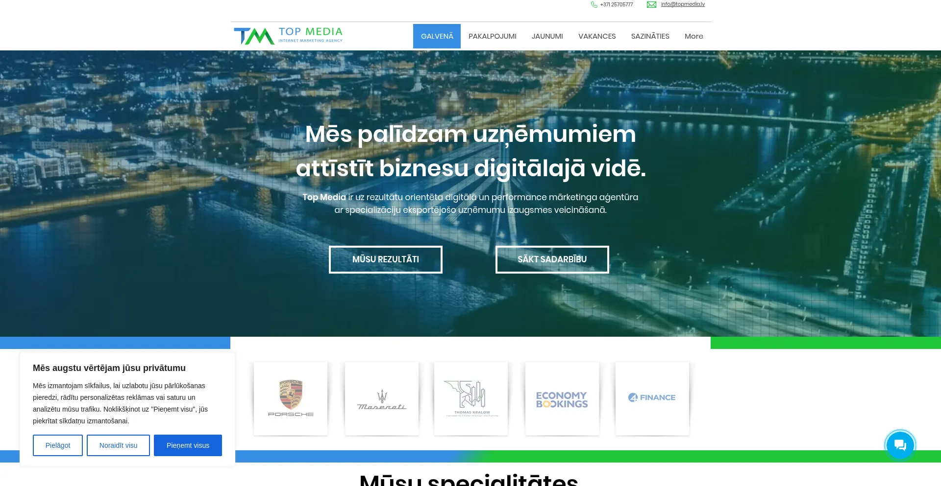 The website implements cookie consent mechanisms in compliance with privacy regulations such as GDPR or CCPA. This demonstrates that topmedia.lv adheres to data protection standards and provides users with control over personal data collection practices.