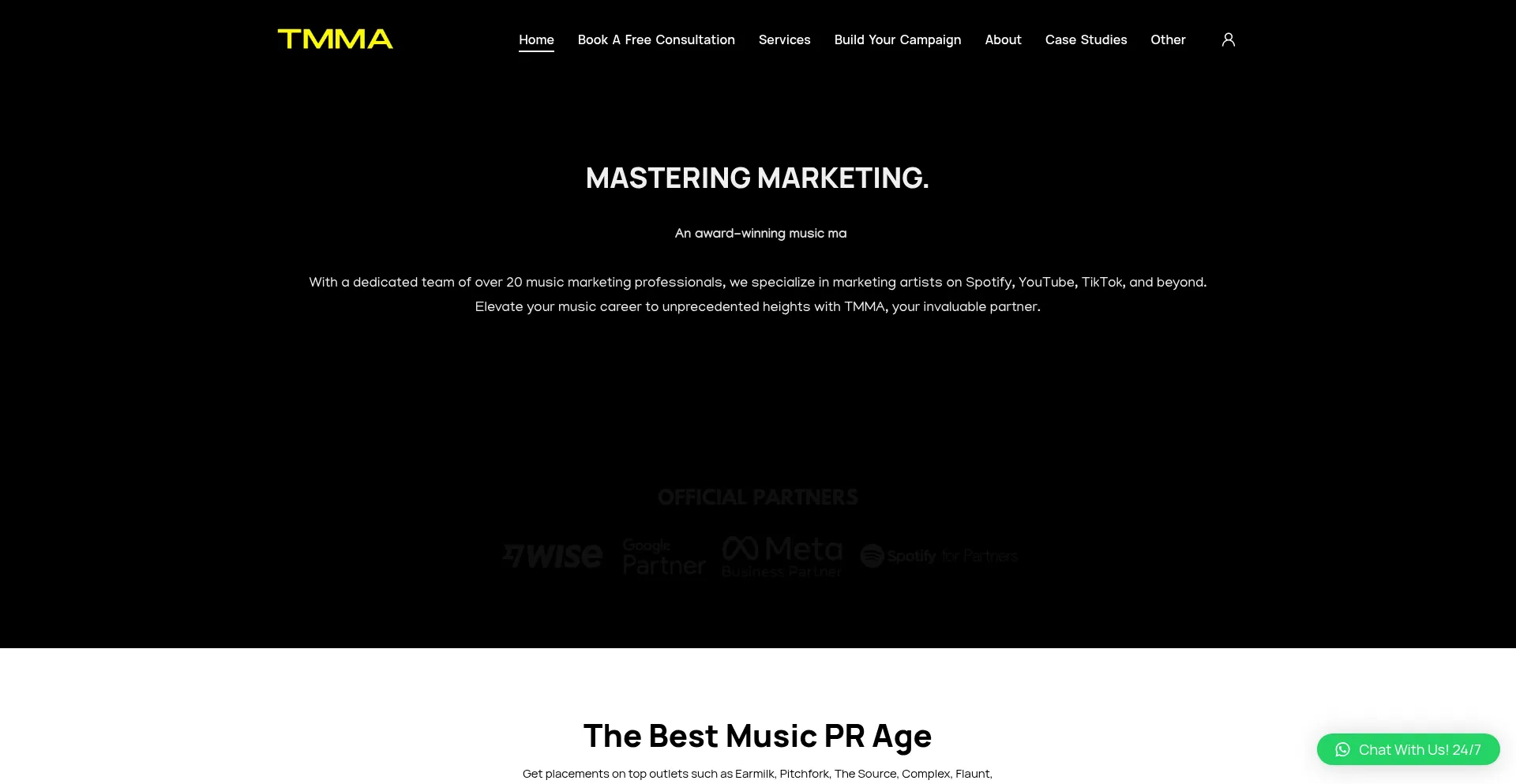 The topmusicmarketingagency.com website uses Google Tag Manager to add and update tracking tags on its website.