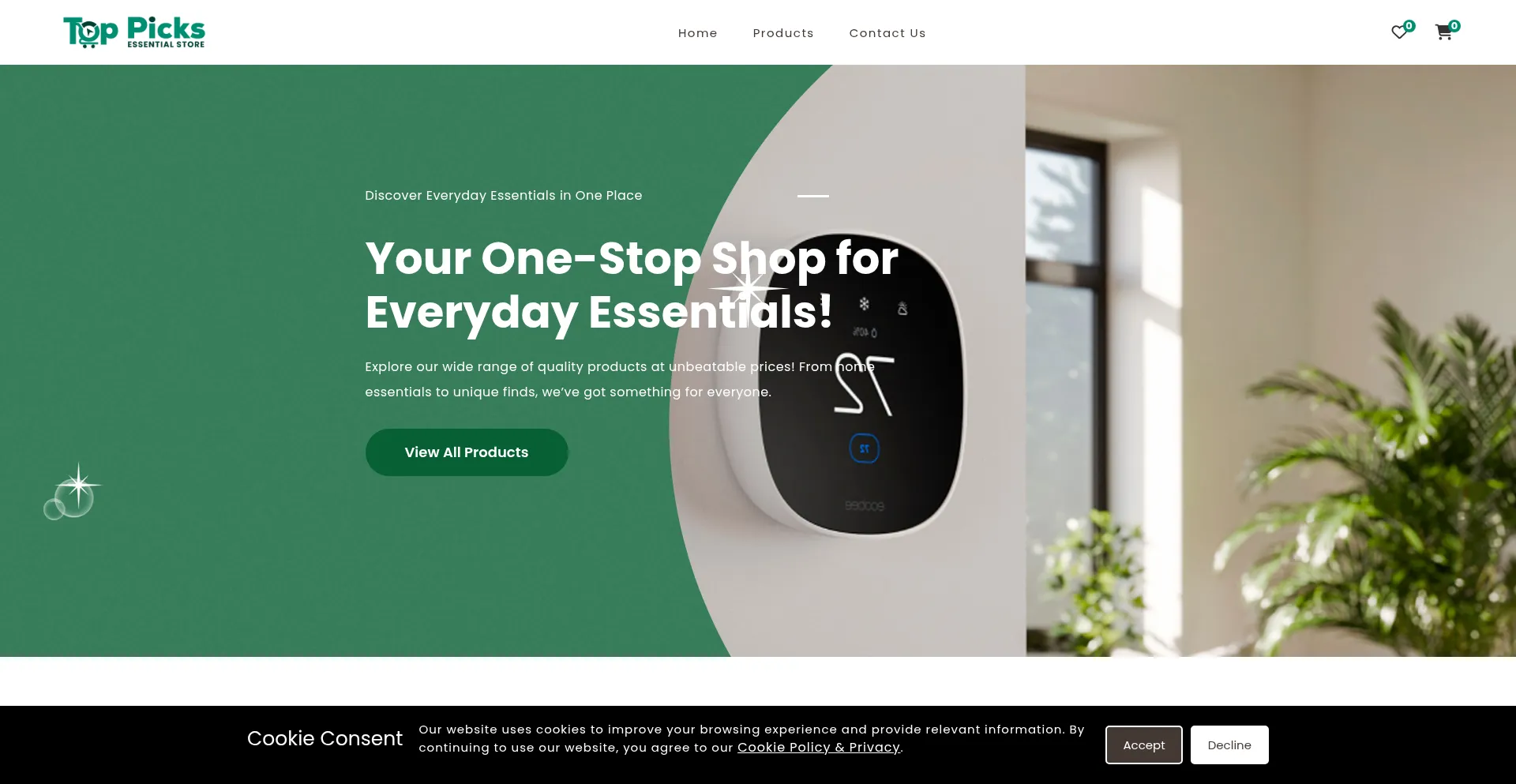 Analysis indicates that toppicksessentialstore.com operates as an e-commerce platform facilitating online transactions for goods or services. The website implements shopping cart functionality, payment processing systems, and product catalog features typical of commercial retail operations.