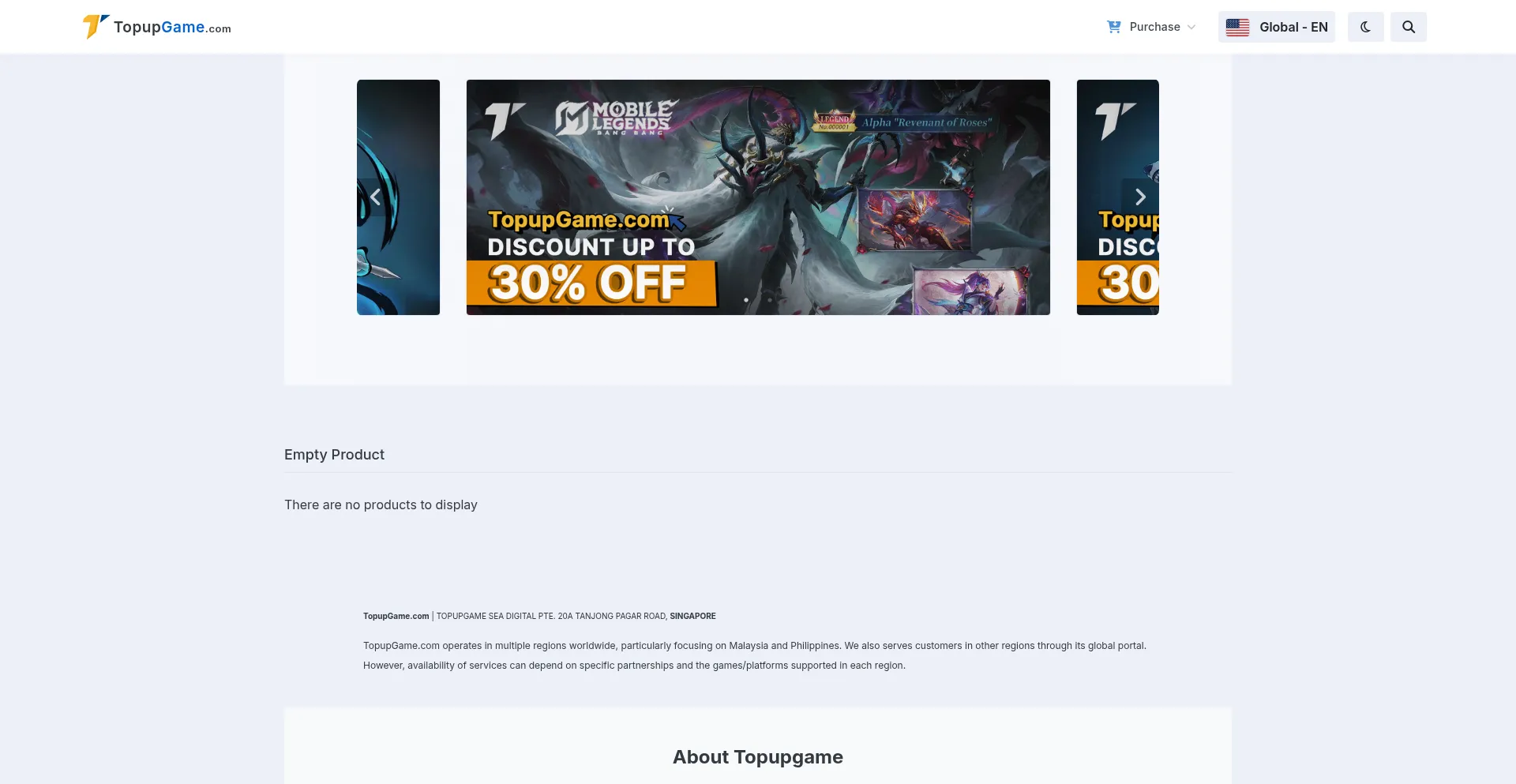 Analysis indicates that topupgame.com operates as an e-commerce platform facilitating online transactions for goods or services. The website implements shopping cart functionality, payment processing systems, and product catalog features typical of commercial retail operations.