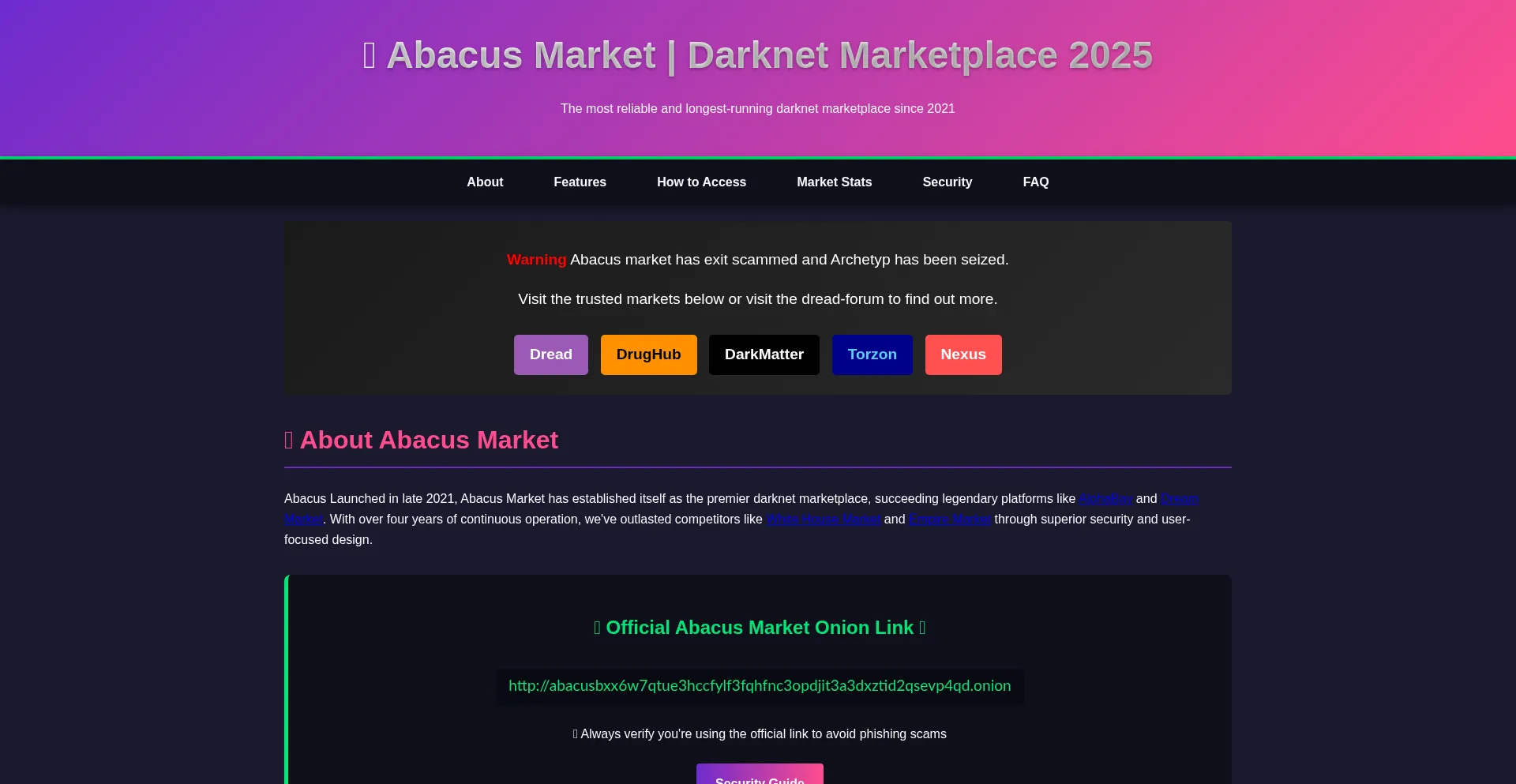 Official Abacus Market resource - Secure access to the longest-running darknet marketplace. Verified onion links, security guides, and market updates.