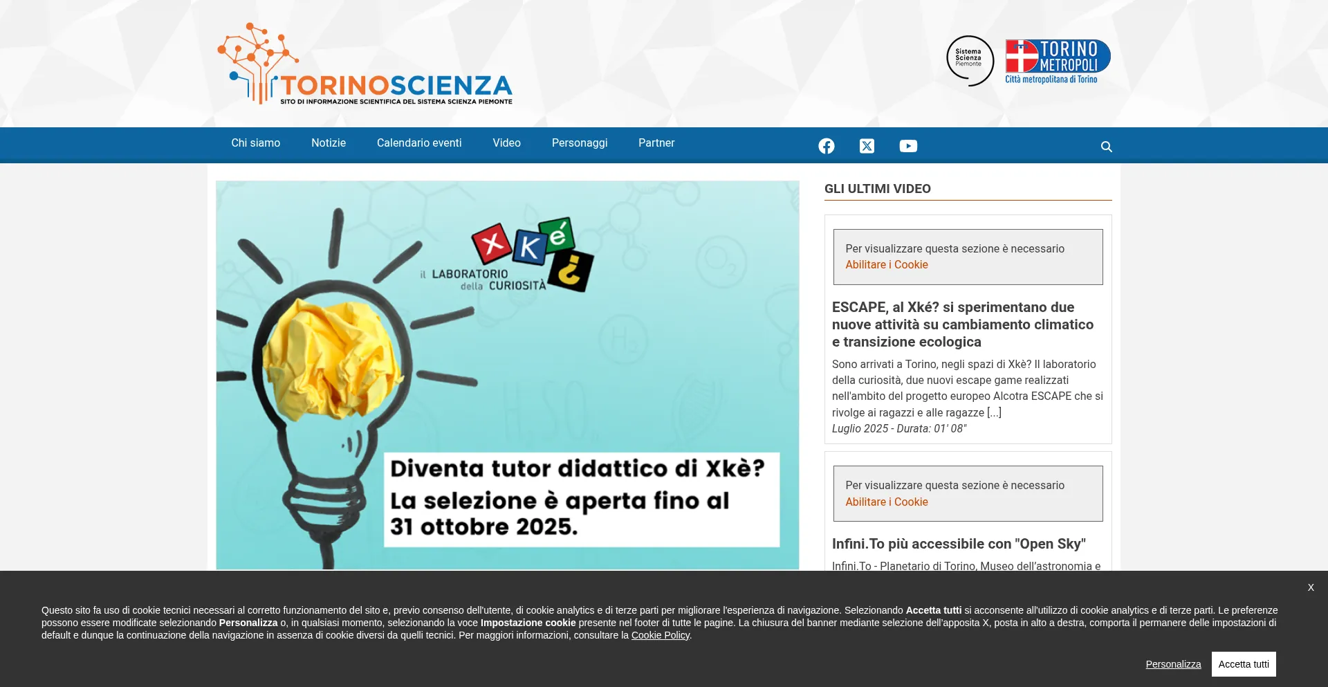The website implements cookie consent mechanisms in compliance with privacy regulations such as GDPR or CCPA. This demonstrates that torinoscienza.it adheres to data protection standards and provides users with control over personal data collection practices.