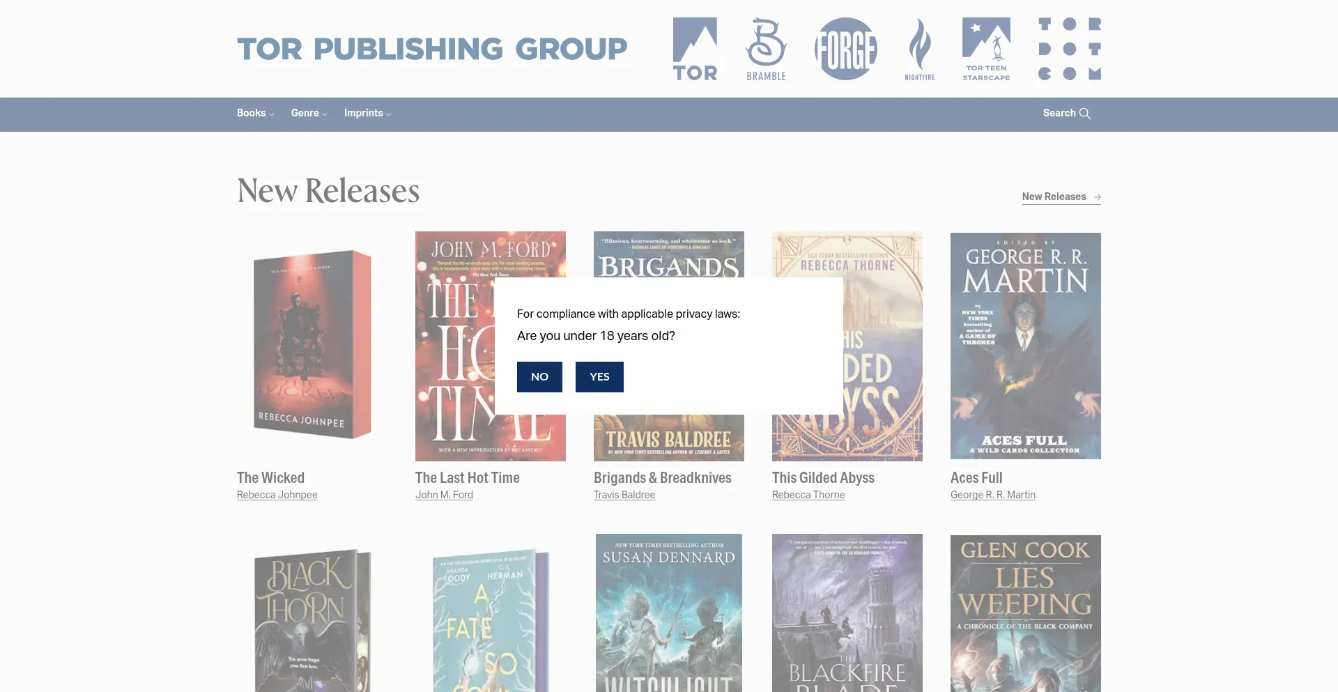 The website implements cookie consent mechanisms in compliance with privacy regulations such as GDPR or CCPA. This demonstrates that torpublishinggroup.com adheres to data protection standards and provides users with control over personal data collection practices.