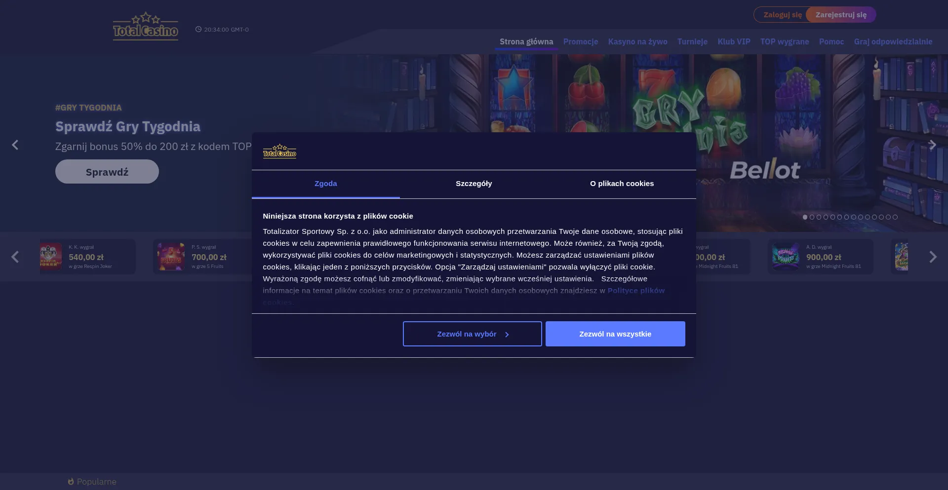 Total Casino - jedyne legalne kasyno internetowe w Polsce. Graj teraz w gry online z kategorii: Automaty, Karty, Ruletka, gry z Jackpotem.