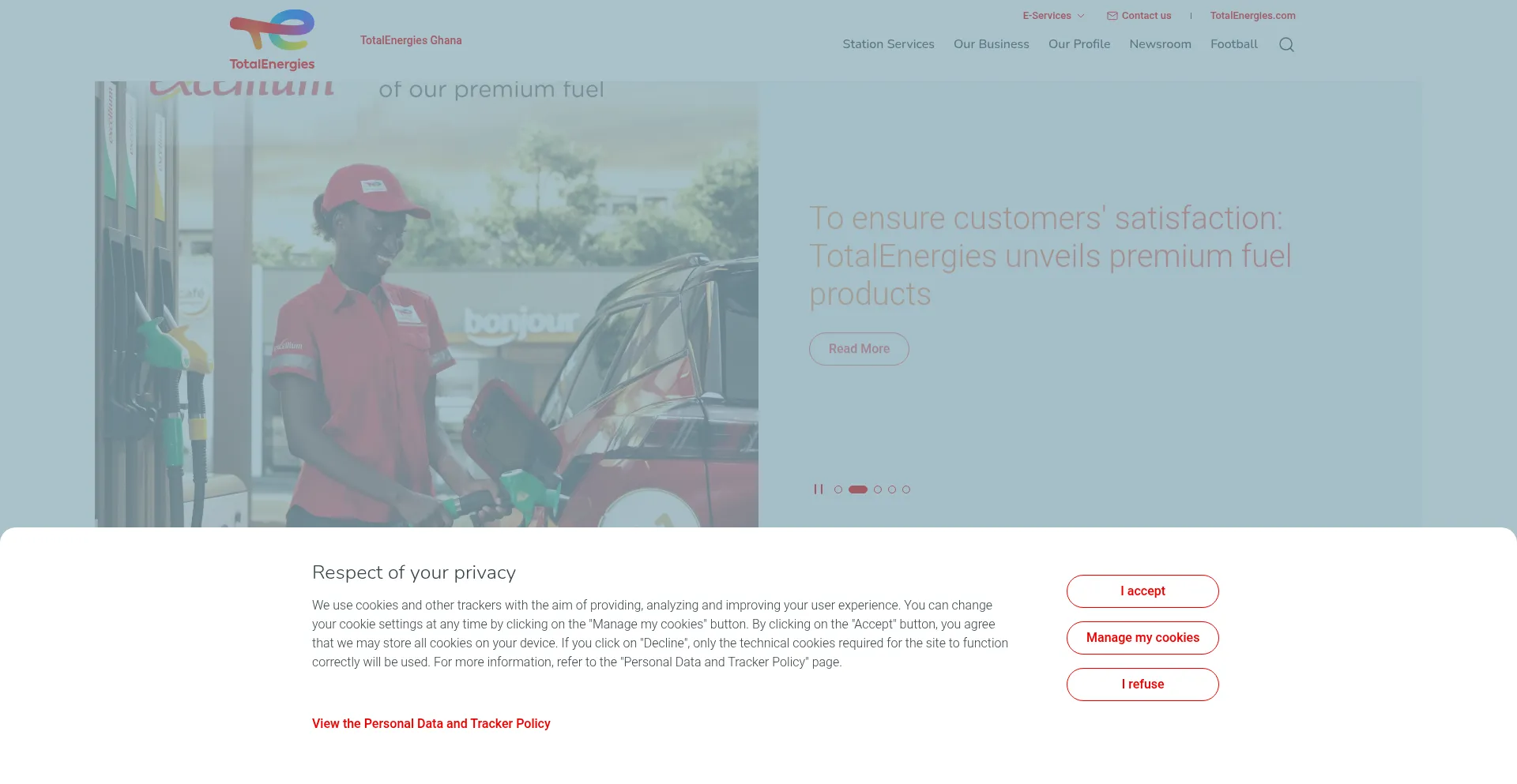The website implements cookie consent mechanisms in compliance with privacy regulations such as GDPR or CCPA. This demonstrates that totalenergies.com.gh adheres to data protection standards and provides users with control over personal data collection practices.