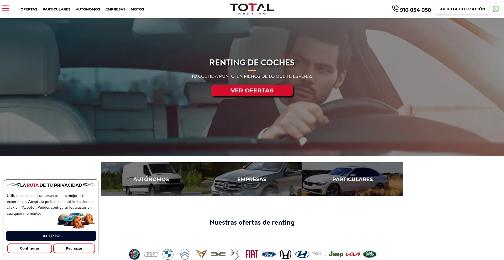 Empresa líder en España en Renting de Coches | Mejores Precios y atención al cliente. Vehículos ✅ Sin entrada ✅ Todo Incluido | Total Renting