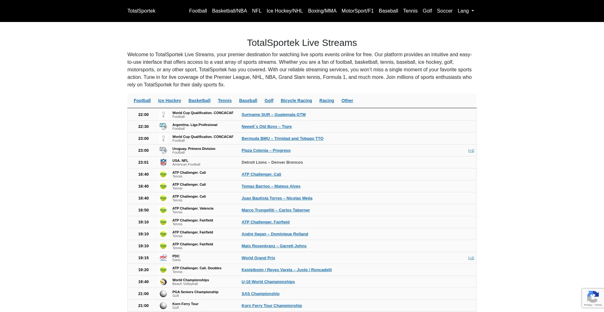 Watch live sports streams for free on TotalSportek: Football, basketball, tennis, baseball, hockey, NFL, golf, racing, and more. Stay updated with all the sports action!