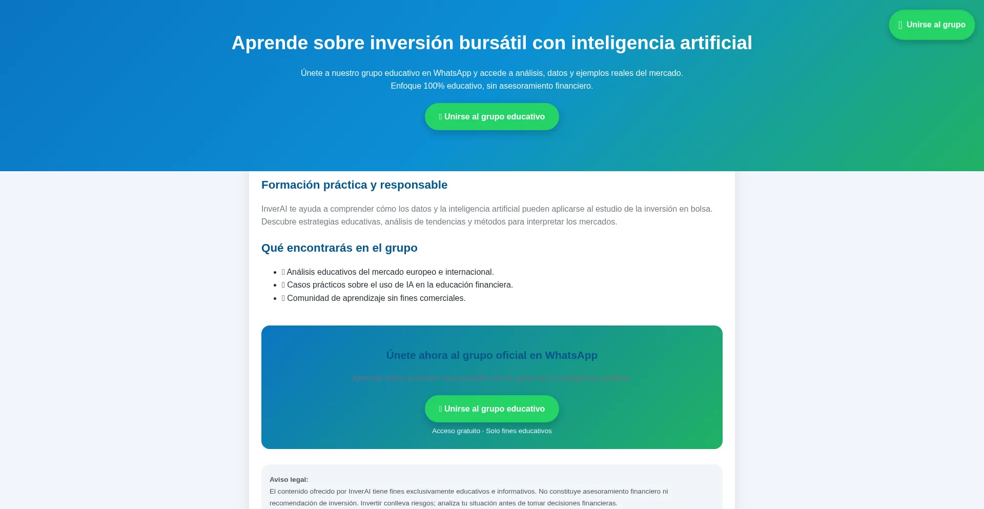 Aprende sobre inversión bursátil con inteligencia artificial en el grupo educativo de InverAI en WhatsApp. Contenido solo con fines educativos.