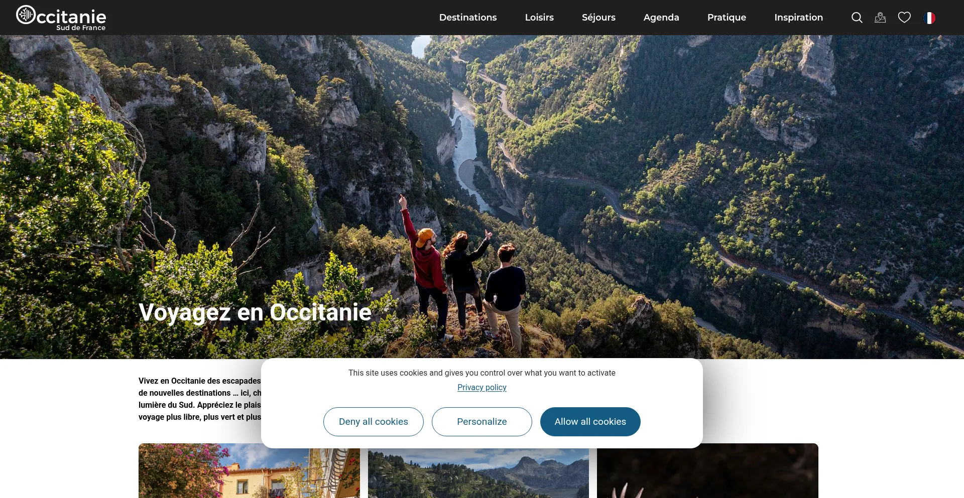 The tourisme-occitanie.com website uses Google Tag Manager to add and update tracking tags on its website.
