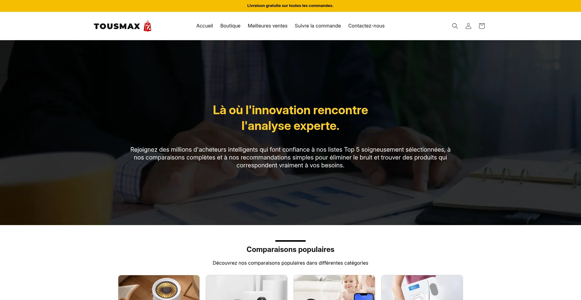 Analysis indicates that tousmax.com operates as an e-commerce platform facilitating online transactions for goods or services. The website implements shopping cart functionality, payment processing systems, and product catalog features typical of commercial retail operations.